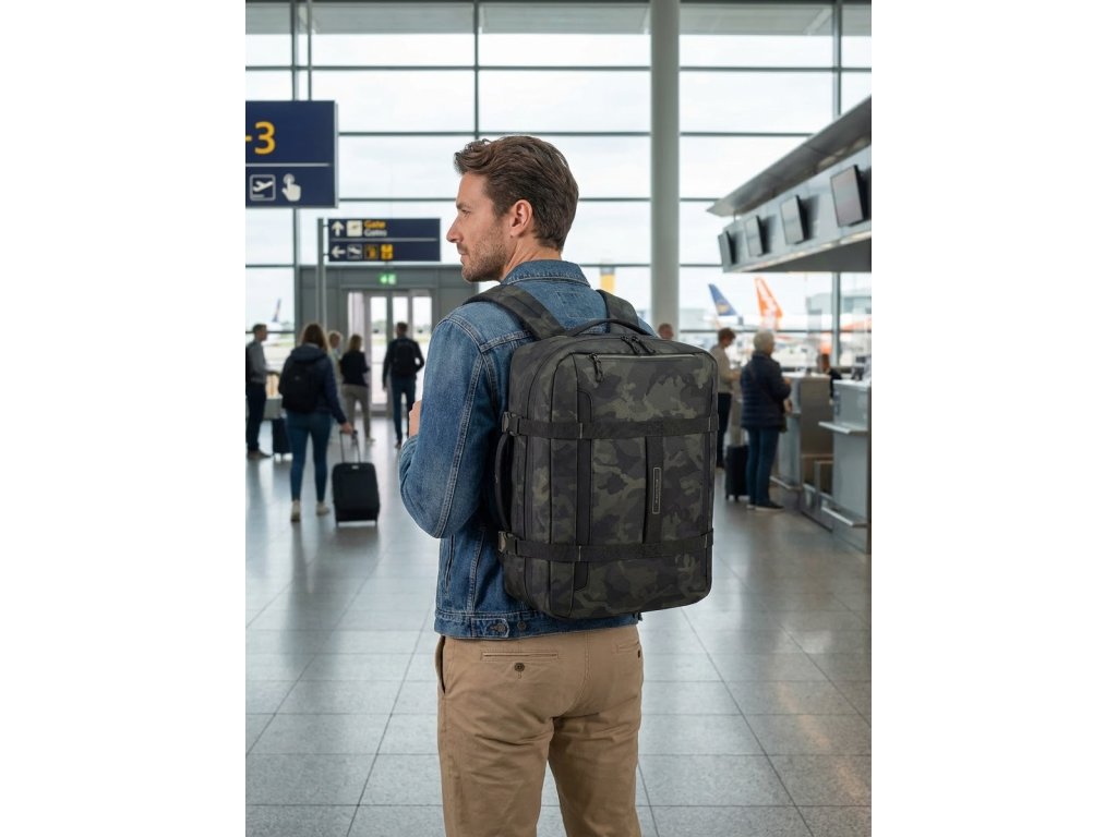 Cestovní multifunkční textilní batoh italské značky Roncato v motivu tmavého maskáče ( černo-šedo-zelený ) série Norway. Tento batoh vyhovuje parametrům švýcarské nízkonákladové letecké společnosti EASYJET. Nová kolekce Norway je navržena pro ty, kteří milují cestování, aniž by se vzdali charakteru a funkčnosti, a spojuje městskou inspiraci s outdoorovým duchem. Norway je všestranná, mladistvá a dynamická kolekce ideální pro ty, kteří hledají flexibilitu, praktičnost a ležérní, ale zároveň rafinovaný styl – ideální pro každou cestu. Pro dynamické cestovatele mezi městem a přírodou. Ideální pro víkendové cesty, cestování letadlem, každodenní použití ve městě. Norway je kolekce vyrobená z voděodolného / vodoodpudivého materiálu se sportovním designem pro ty, kteří hledají všestrannost a odolnost na každé cestě.