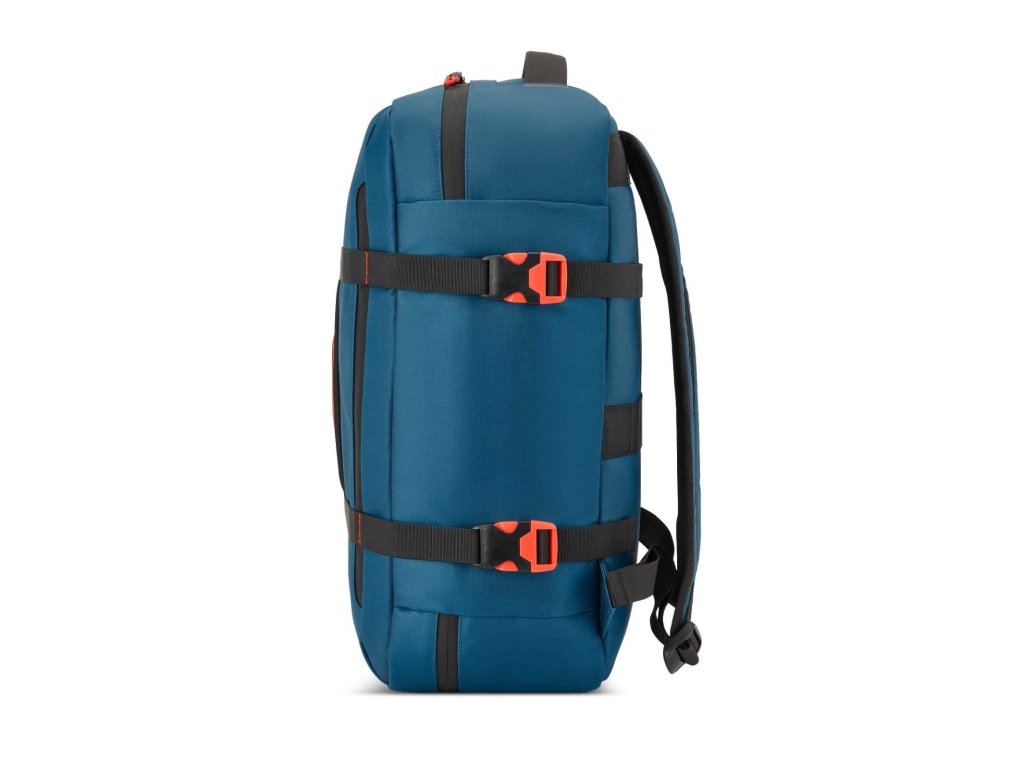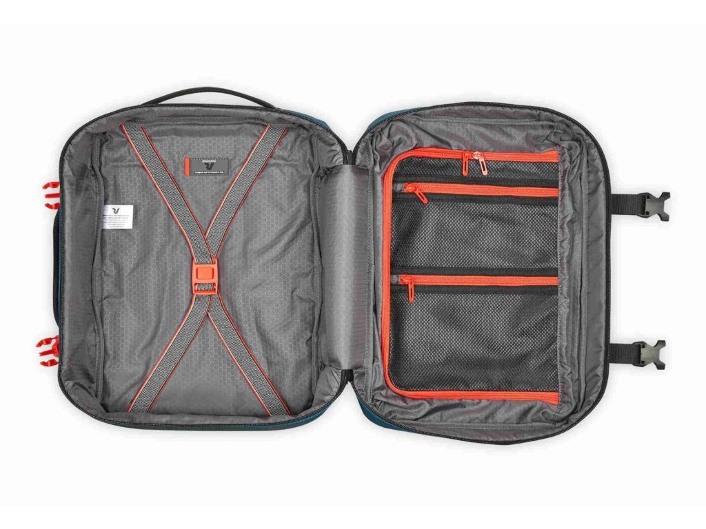 Cestovní multifunkční textilní batoh italské značky Roncato v modré barvě s červenými doplňky série Norway. Toto palubní zavazadlo si můžete vzít s sebou do letadla, jak vyžaduje společnost Ryanair - Wizz air. Nová kolekce Norway je navržena pro ty, kteří milují cestování, aniž by se vzdali charakteru a funkčnosti, a spojuje městskou inspiraci s outdoorovým duchem. Norway je všestranná, mladistvá a dynamická kolekce ideální pro ty, kteří hledají flexibilitu, praktičnost a ležérní, ale zároveň rafinovaný styl – ideální pro každou cestu. Pro dynamické cestovatele mezi městem a přírodou. Ideální pro víkendové cesty, cestování letadlem, každodenní použití ve městě. Norway je kolekce vyrobená z voděodolného / vodoodpudivého materiálu se sportovním designem pro ty, kteří hledají všestrannost a odolnost na každé cestě.