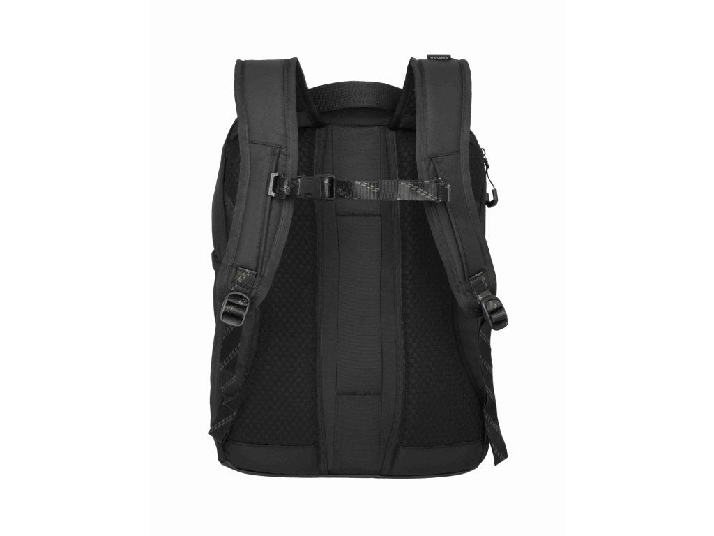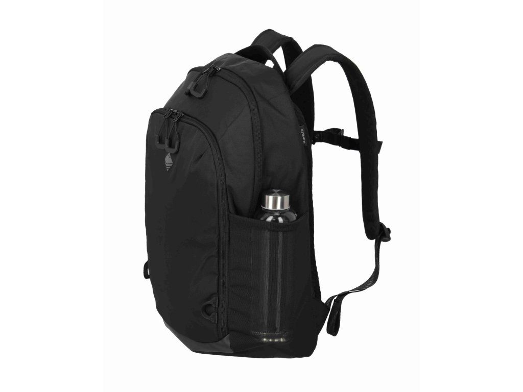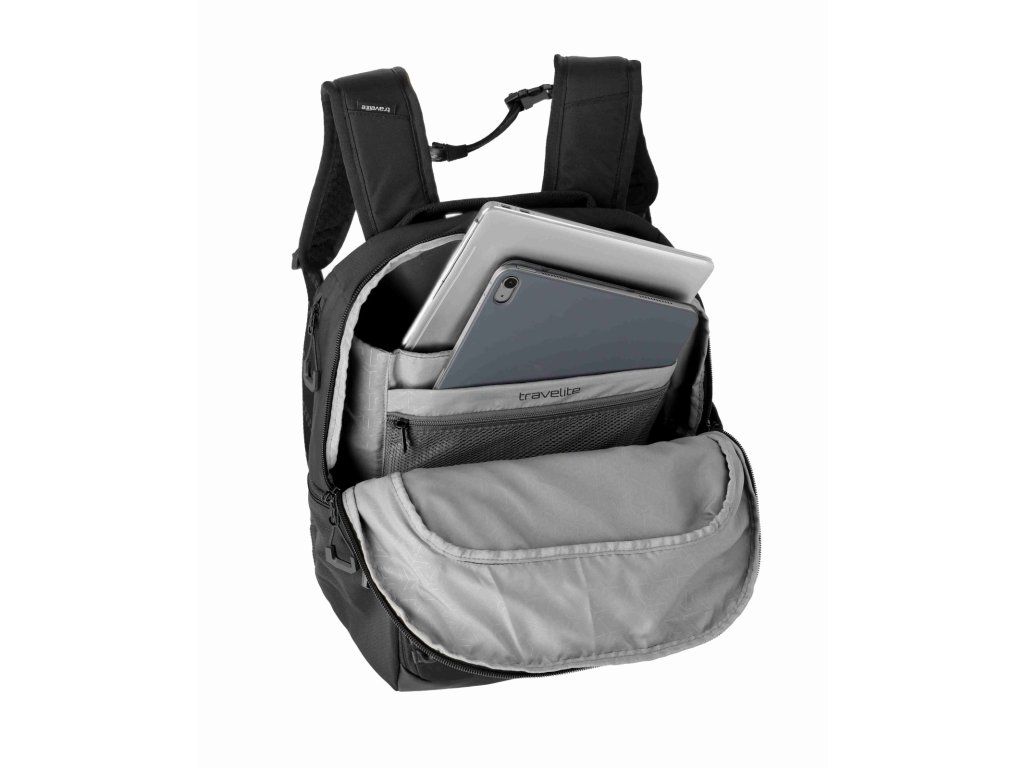 Kvalitní cestovní batoh značky Travelite sére Venture line M v oblíbené černé barvě. Cestovní batoh Travelite Venture line M je ideální parťák na město, práci i kratší cesty, kdy chcete mít věci přehledně a pohodlně na zádech. Má jednoduchý, čistý design, který neurazí v kanceláři ani na cestách, a praktické členění. Hlavní komora se otevírá klasicky na dvoucestný zip a uvnitř najdete oddělený prostor na notebook / tablet a další kapsy na drobnosti. V přední části je samostatná kapsa na zip na věci, které chcete mít rychle po ruce (peněženka, doklady, sluchátka). Nechybí ani jedna boční síťovaná kapsa na láhev a jedna látková na zip. Na cestování potěší pohodlné nošení: polstrované ramenní popruhy, prodyšný zádový panel a hrudní popruh, který pomáhá batoh zafixovat při delší chůzi. A když jedete s kufrem, oceníte zadní popruh pro nasunutí na madlo kufru – batoh pak stabilně drží a vy máte volné ruce.