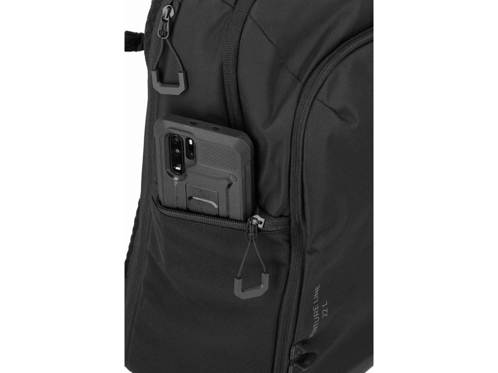 - Přední kapsa se zavíráním na dvoucestný zip, vnitřní zasouvací kapsy, kapsa na zip, karabina na klíče