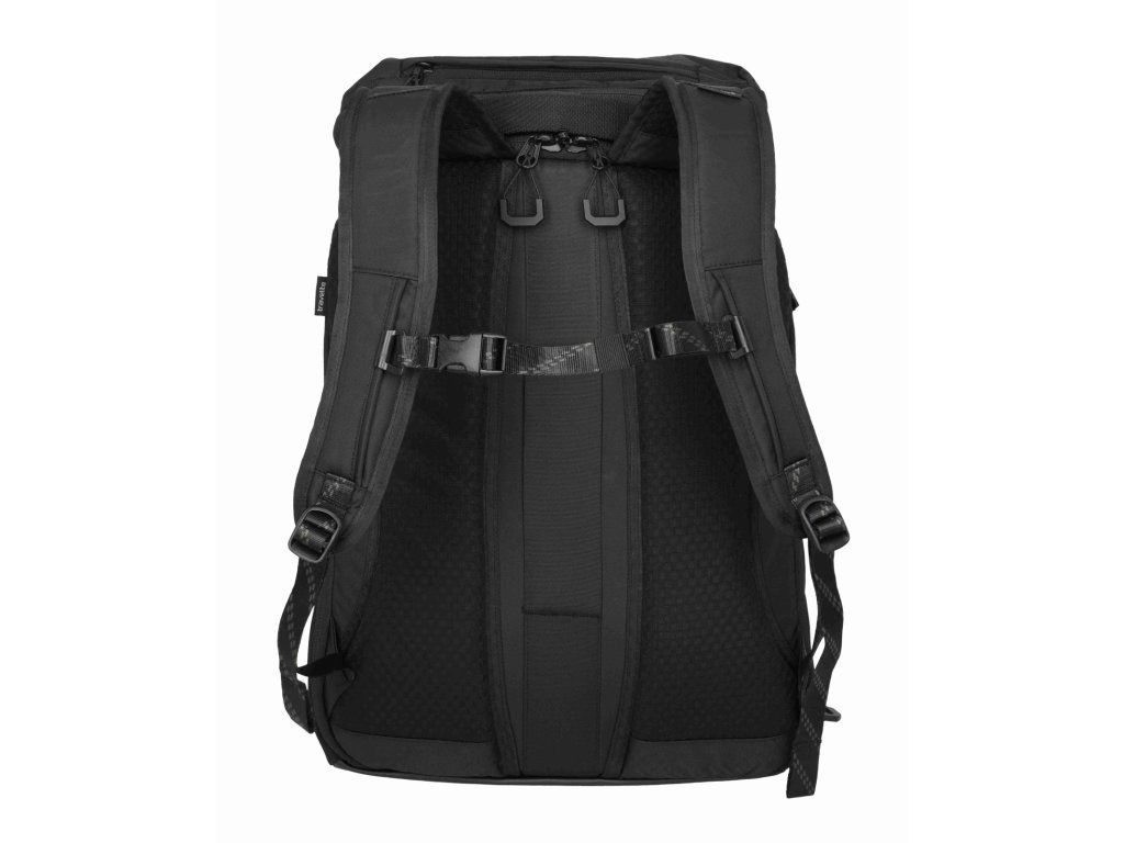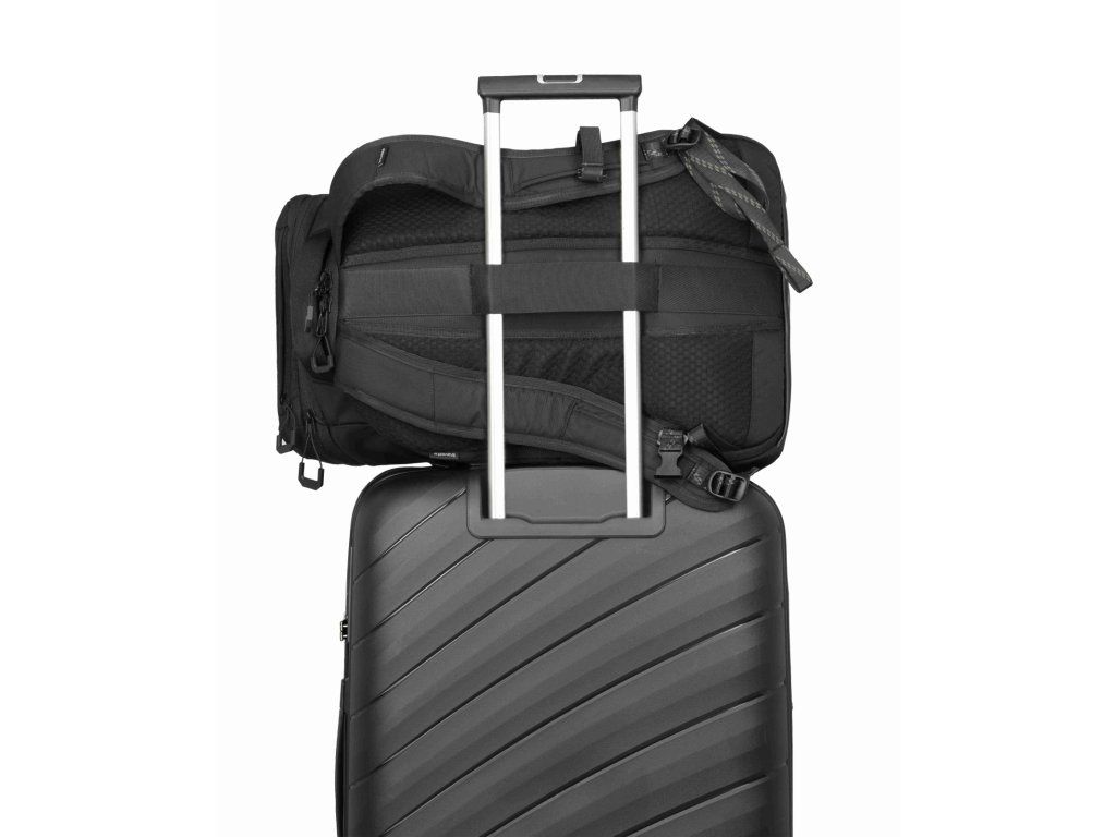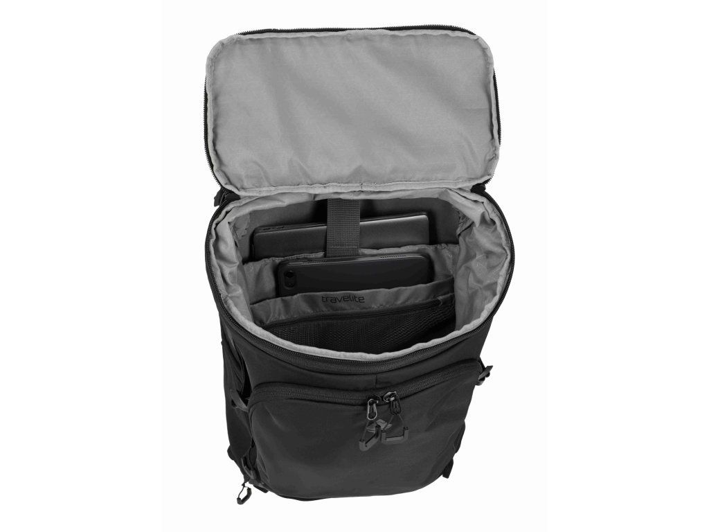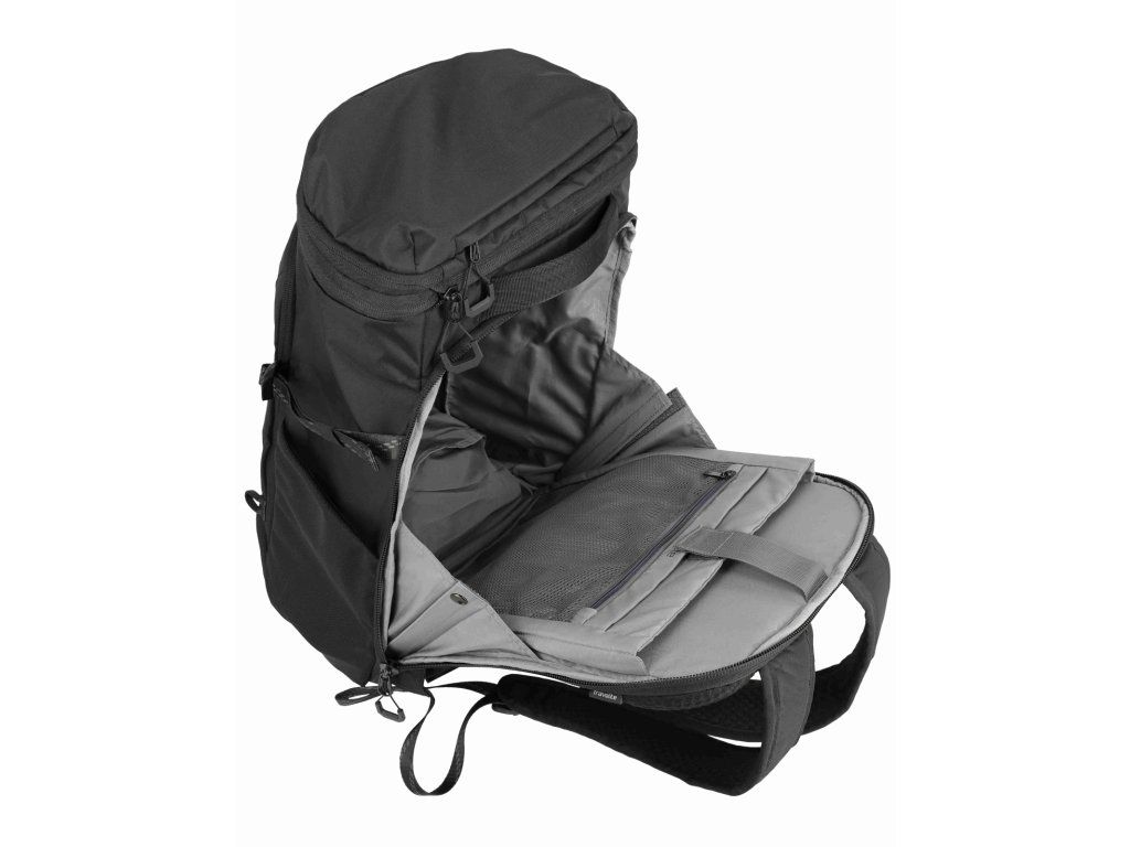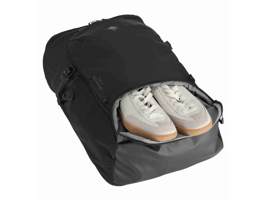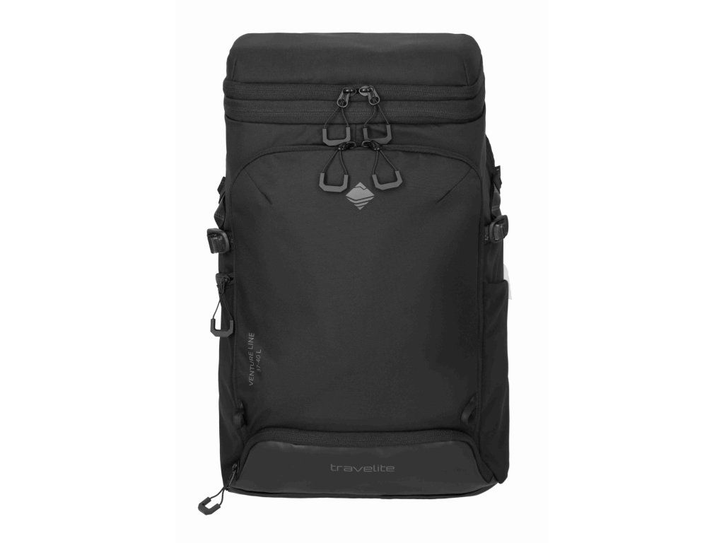 Kvalitní velký cestovní batoh značky Travelite sére Venture line XL v oblíbené černé barvě. Když nechcete řešit, jestli se vám „to ještě vejde“, je tu Travelite Venture line XL. Velkoobjemový cestovní batoh, který je dělaný na delší cesty a situace, kdy s sebou vezete víc věcí – ale pořád je chcete mít pohodlně na zádech a hlavně přehledně. Největší výhoda je dvojitý přístup do hlavního prostoru: můžete balit klasicky shora, nebo batoh otevřít přes zadní panel a dostat se k věcem i uprostřed bez vyhazování půlky obsahu. Uvnitř je oddělená přihrádka na notebook / tablet a kapsy na drobnosti, takže elektronika necestuje „na volno“. Na cestách potěší i samostatná spodní kapsa na boty – ideální na tenisky, přezůvky nebo věci, které chcete mít odděleně. Pro pohodlné nošení má batoh polstrované ramenní popruhy, hrudní popruh. Kompresní popruhy stáhnou objem a udrží tvar, a boční kapsa poslouží třeba na láhev. Praktický detail na letišti a v přesunech: zadní popruh pro nasunutí na madlo kufru, takže batoh můžete vézt spolu s kufrem bez neustálého sundávání.