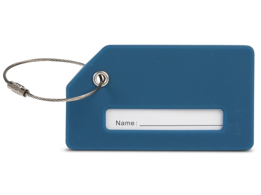 Silikonová jmenovka německé značky Fabrizio v modré barvě s motivem letadla. Ztratit