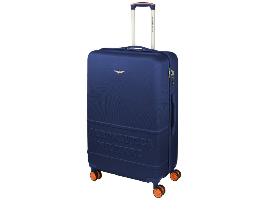 Elegantně sportovní plastový kufr 77 cm prestižní značky Aeronautica Militare v modré barvě.
