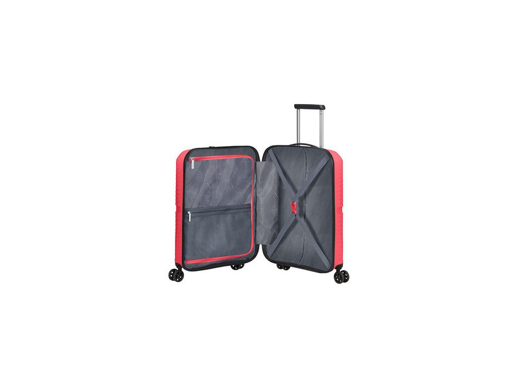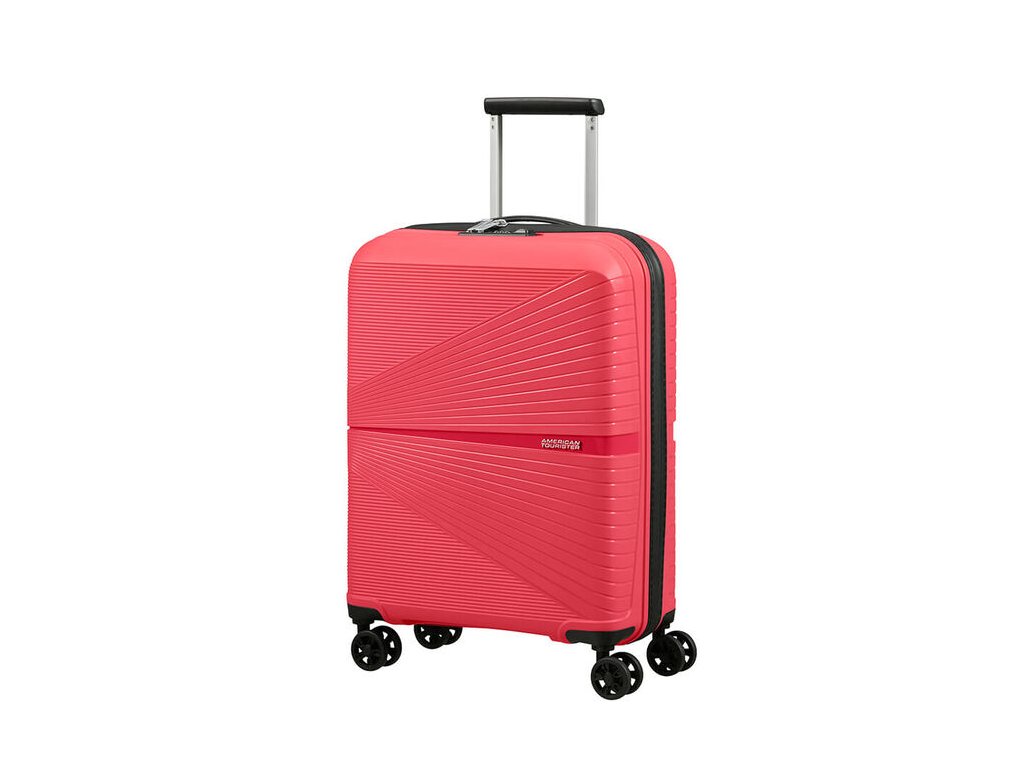 Cestovní odlehčený kufr American Tourister linie Airconic v růžové barvě, čtyřmi kolečky, TSA zámkem a vnitřní přepážkou s kapsou na zip. Kolekce Airconic se vyznačuje moderním designem, extra nízkou váhou a díky použitému materiálu velkou odolností.
