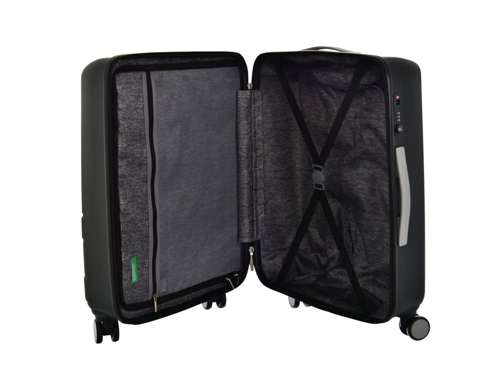 Cestovní skořepinový kufr italské značky United Colors of Benetton v černé barvě. Spolehněte se na kombinaci dvou materiálů, ABS a polykarbonátu. ABS je odolný proti poškození a polykarbonát vyniká svou pružností. Jedinečný vzhled kufru, velmi kvalitní zpracování a vysoká spolehlivost jsou přednosti této proslulé značky. Kufry Benetton jsou vhodné i pro náročné uživatele.