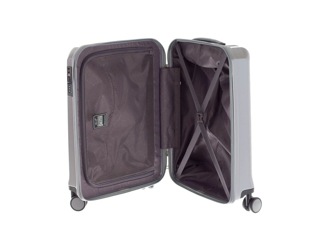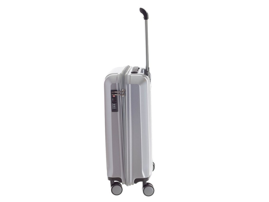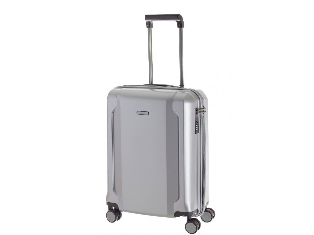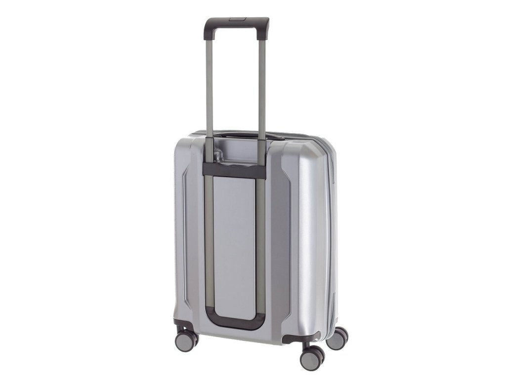 Moderní polykarbonátový kufr 54 cm německé značky D&N ve stříbrné barvě s plně integrovaným tsa zámkem a čtyřmi kolečky.- Horní madlo pro nošení v ruce.