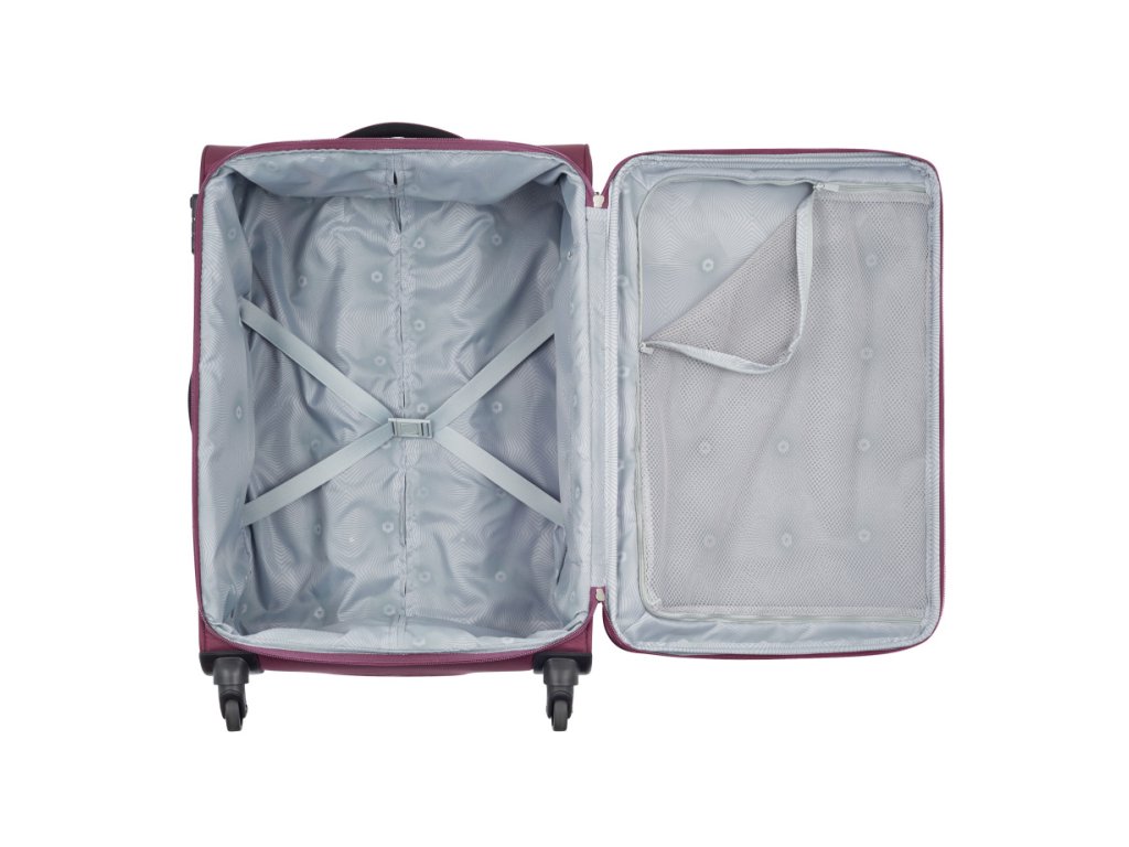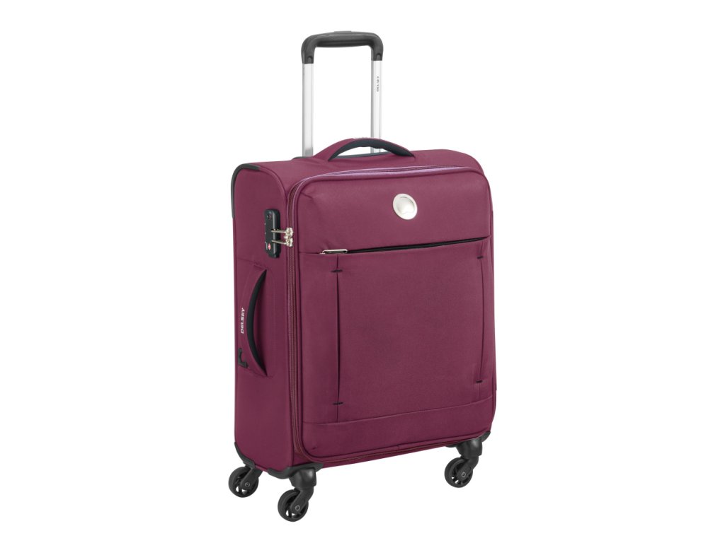 Lehký kabinový kufr 55 cm francouzské značky Delsey Banjul ve fialové barvě. Ideální rozměr pro většinu leteckých společností jako kabinové zavazadlo.