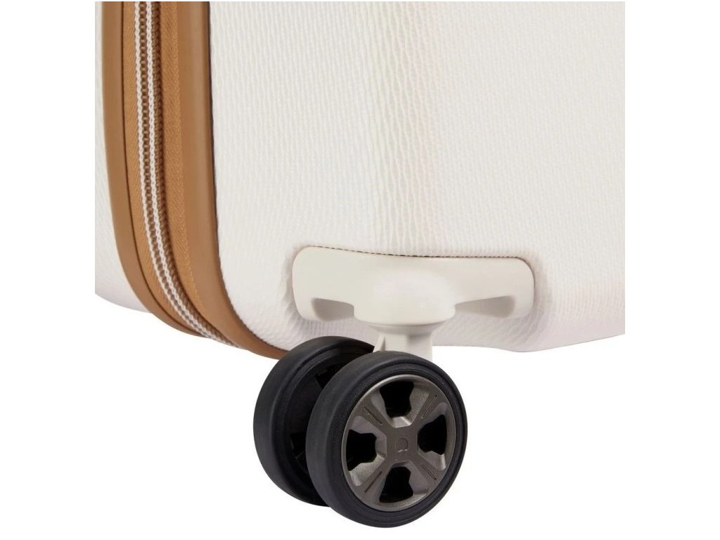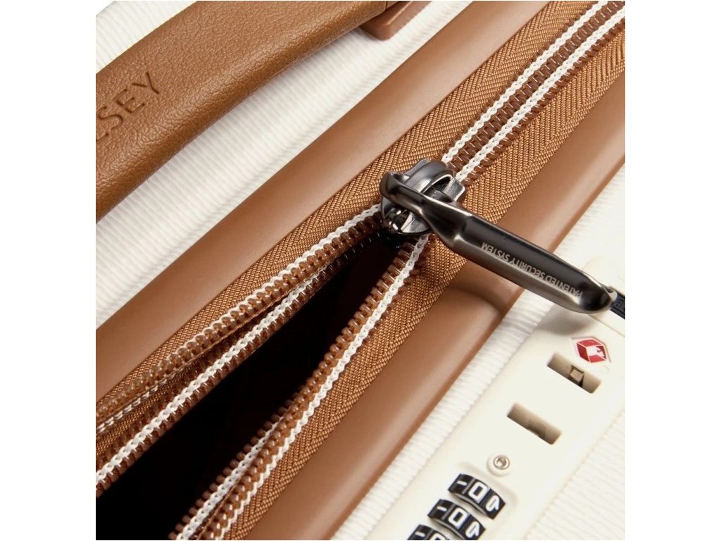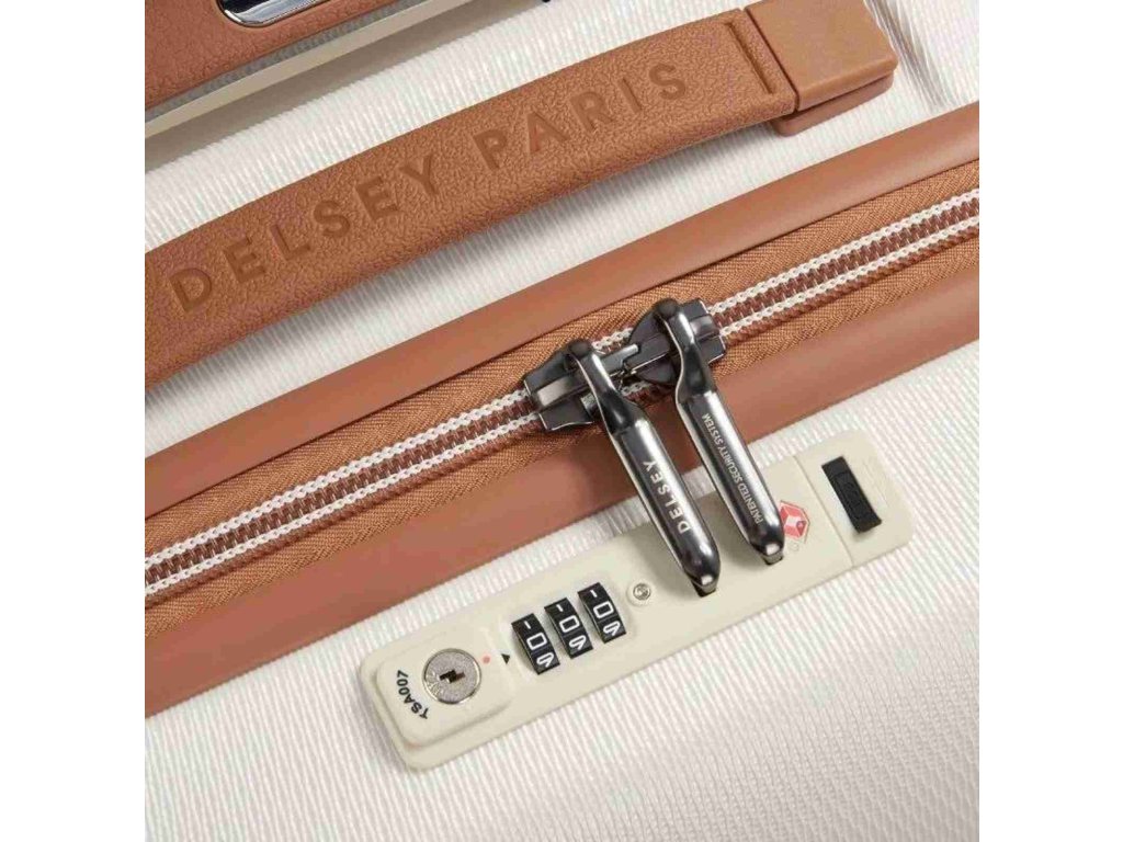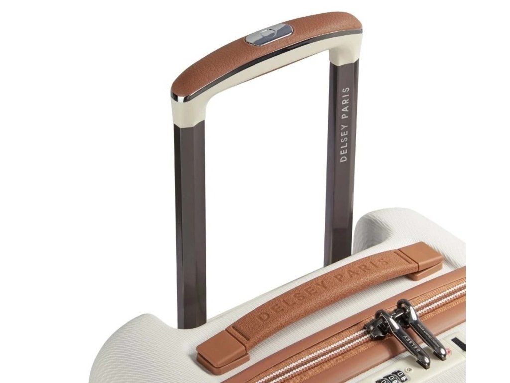 Luxusní cestovní kufr 76 cm francouzské špičkové značky Delsey v atraktivní bílé barvě s koženými detaily v koňakové bavě. Nádherná řada je ta pravá volba pro ty, kdo rádi cestují s nádechem luxusu. CHATELET AIR 2.0 je skutečným ztělesněním francouzského know-how a elegance. Jeho design evokuje tradiční pařížskou architekturu. Jeho jedinečné linie připomínají vintage design zavazadel z minulosti a zároveň jim propůjčují moderní a současný vzhled. Pokud nehledáte kompromisy, volte luxusní zavazadla Delsey, opravdu nebudete litovat. Delsey je prvotřídní kvalita bez kompromisů.