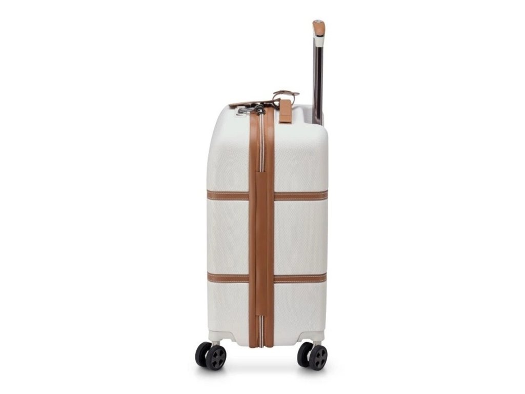 Luxusní kabinový cestovní kufr francouzské špičkové značky Delsey v atraktivní bílé barvě s koženými detaily v koňakové bavě. Nádherná řada je ta pravá volba pro ty, kdo rádi cestují s nádechem luxusu. CHATELET AIR 2.0 je skutečným ztělesněním francouzského know-how a elegance. Jeho design evokuje tradiční pařížskou architekturu. Jeho jedinečné linie připomínají vintage design zavazadel z minulosti a zároveň jim propůjčují moderní a současný vzhled. Pokud nehledáte kompromisy, volte luxusní zavazadla Delsey, opravdu nebudete litovat. Delsey je prvotřídní kvalita bez kompromisů.