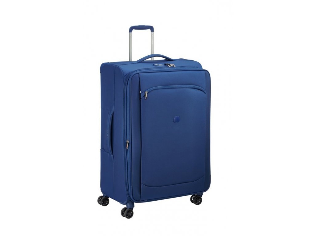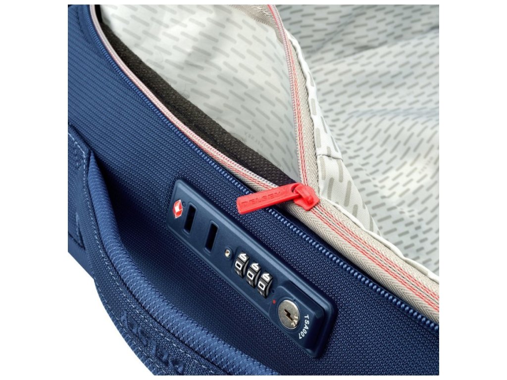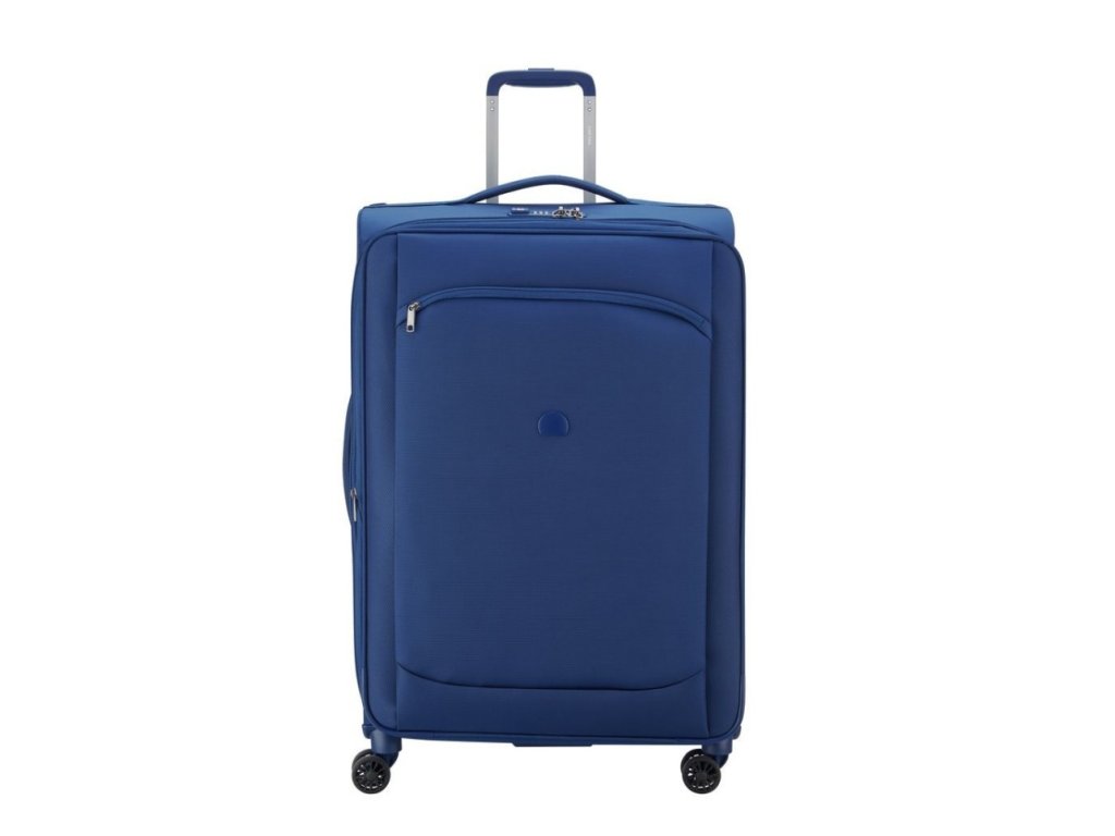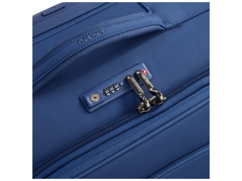 Velký cestovní textilní kufr se čtyřmi otočnými dvojkolečky francouzské špičkové značky Delsey v moderní modré barvě. Zavazadla Delsey jsou pravidelně podrobována nejnáročnějším testům, aby splňovala náročná kritéria zákazníků a jejich spokojenost byla na prvním místě. Precizní zpracování a kvalitní užité materiály jsou doménou této luxusní značky.