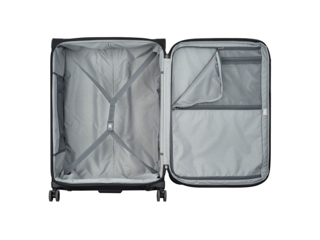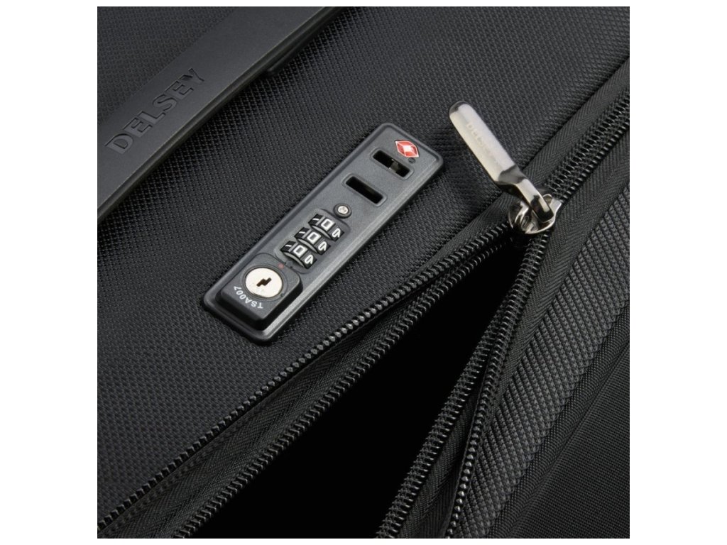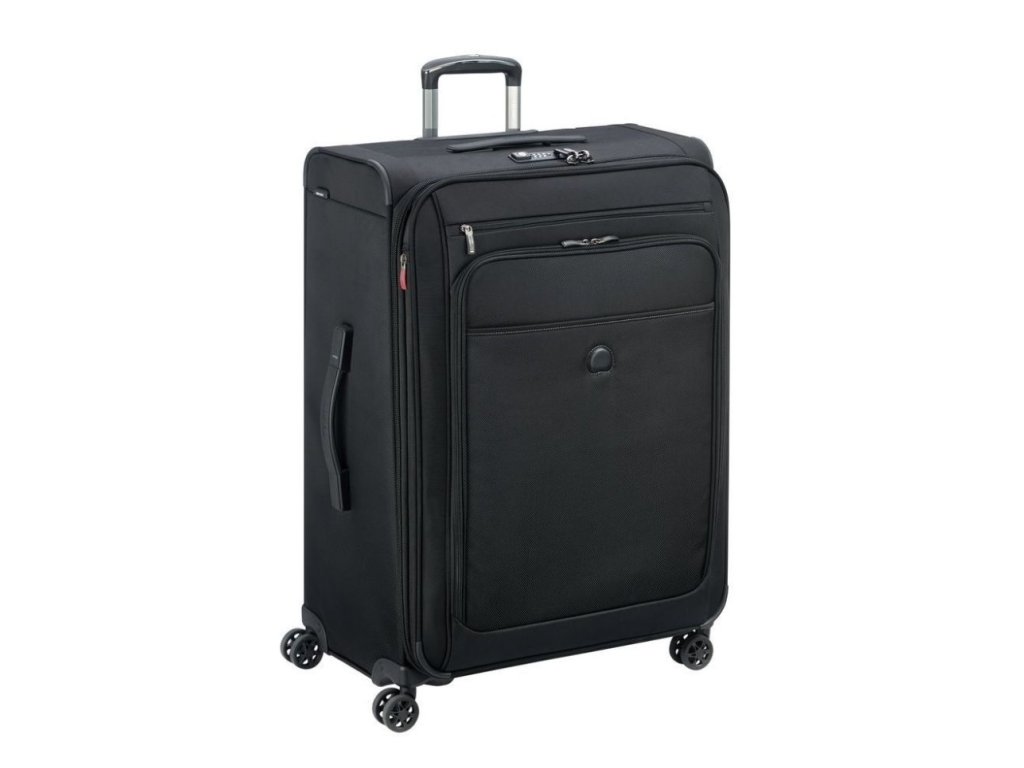 Velký cestovní textilní kufr špičkové kvality francouzské luxusní značky Delsey v oblíbené černé barvě. Jedná se o opravdu velmi precizně zpracované zavazadlo. Značka nezapomněla ani na povedené detaily, možnost rozšiřitelného objemu a praktičnost ve všech ohledech.