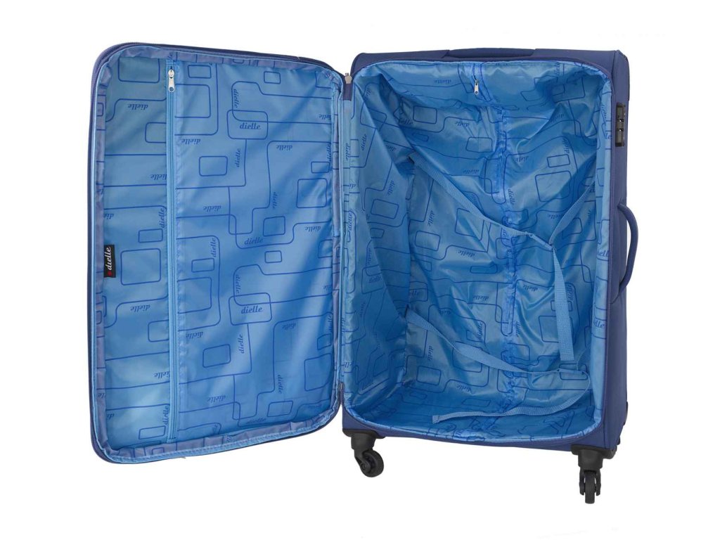 Textilní ultralehký cestovní kufr 77 cm italské značky Dielle v modré barvě. Lehké a kvalitně propracované kufry se pyšní i kvalitními zipy a špičkovými užitými materiály. Tyto kufry se stanou vašimi věrnými společníky na všech vašich cestách, ať už pracovních či odpočinkových.