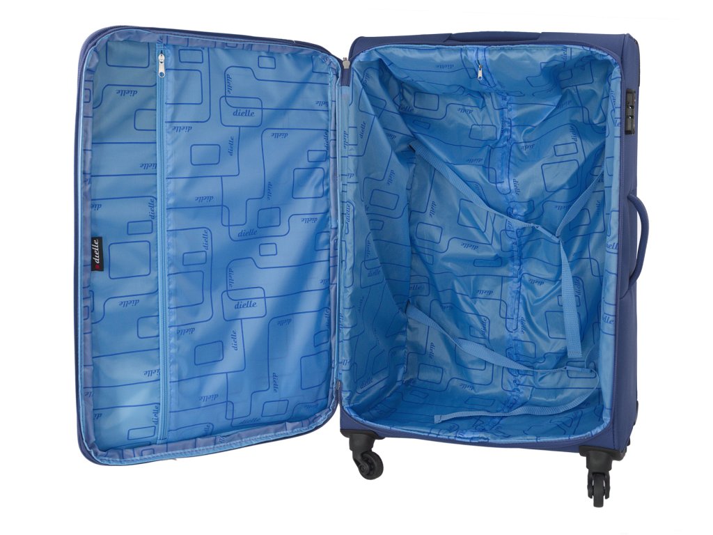 Textilní ultralehký cestovní kufr 67 cm italské značky Dielle v modré barvě. Extra lehké a kvalitně propracované kufry se pyšní i kvalitními zipy a špičkovými užitými materiály. Tyto kufry se stanou vašimi věrnými společníky na všech vašich cestách, ať už pracovních či odpočinkových.