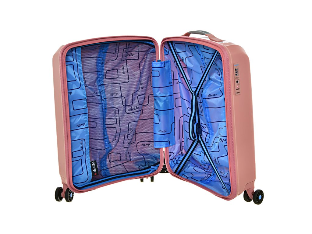 Skořepinový kufr růžové barvy 55 cm italské značky Dielle je ideálním společníkem. Díky ultralehkému materiálu se pro Vás cestování stane radostí. Do zavazadla se Vám vejdou všechny potřebné věci.