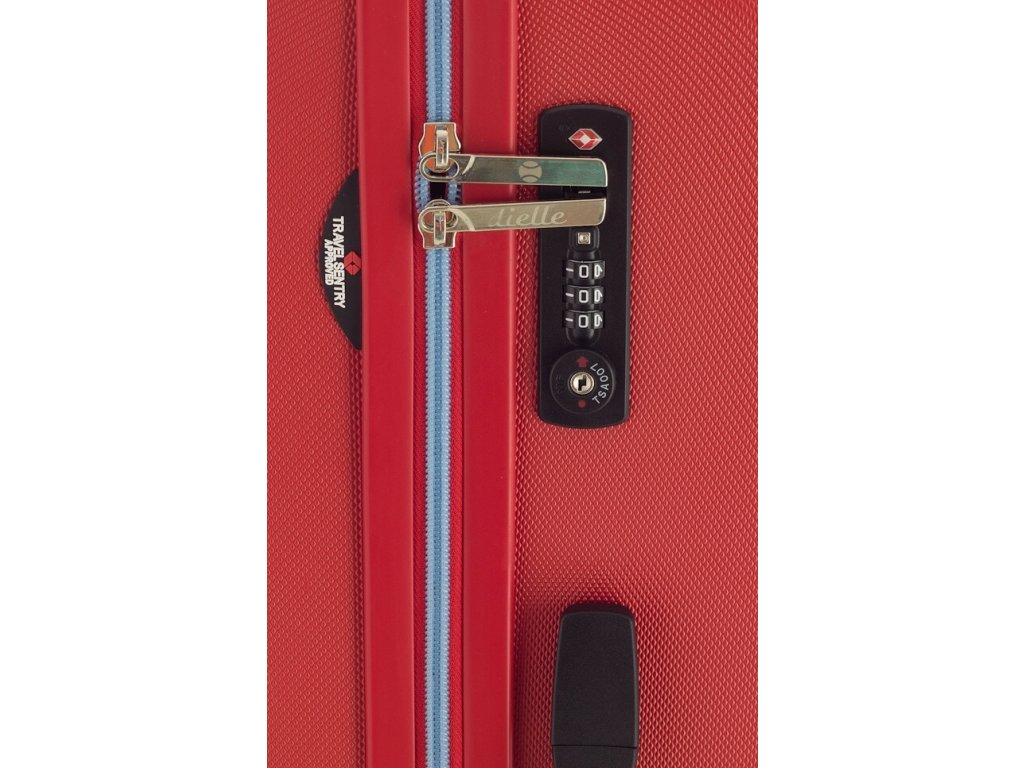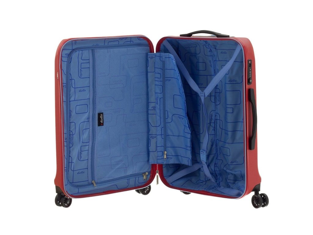 Moderní plastový kufr 77 cm značky dielle v červené barvě.- Výsuvná hliníková trolley s aretací.