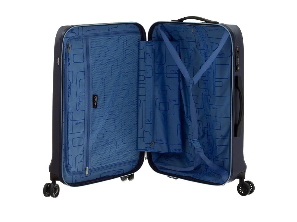 Moderní plastový kufr 67 cm značky dielle v modré barvě.- Výsuvná hliníková trolley s aretací.