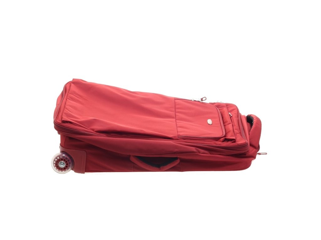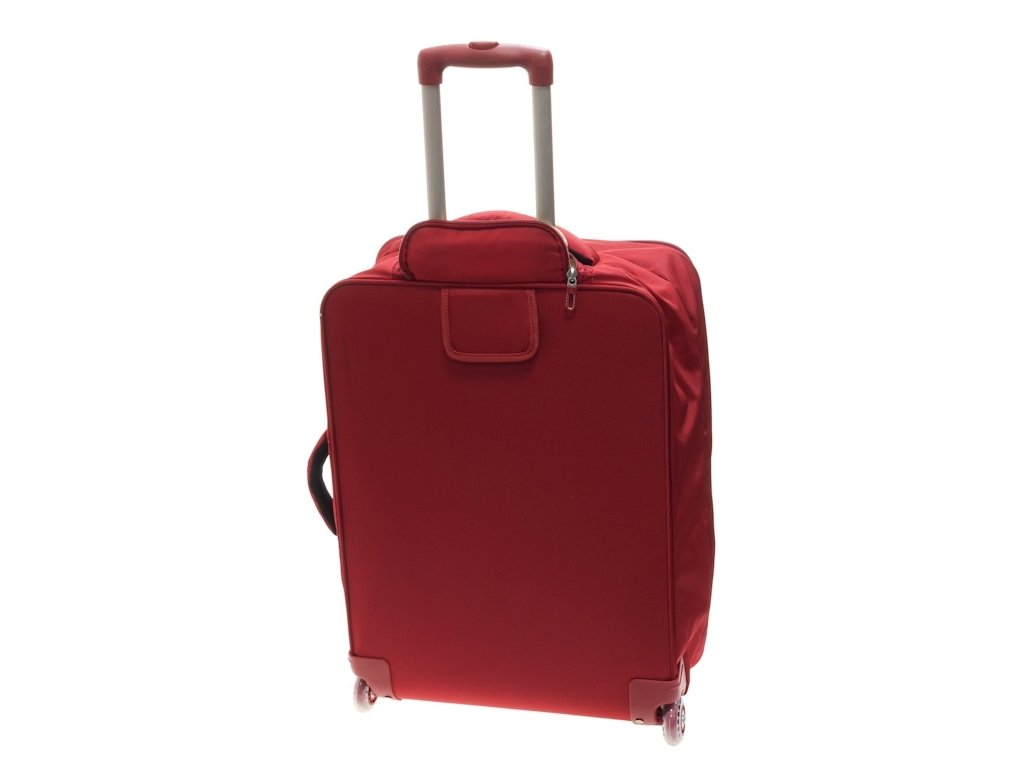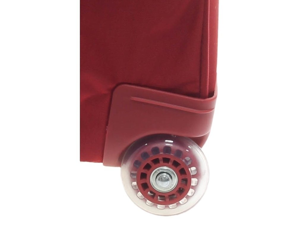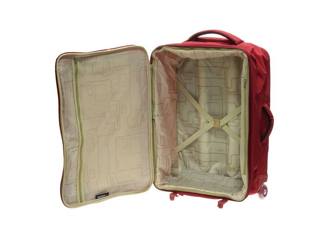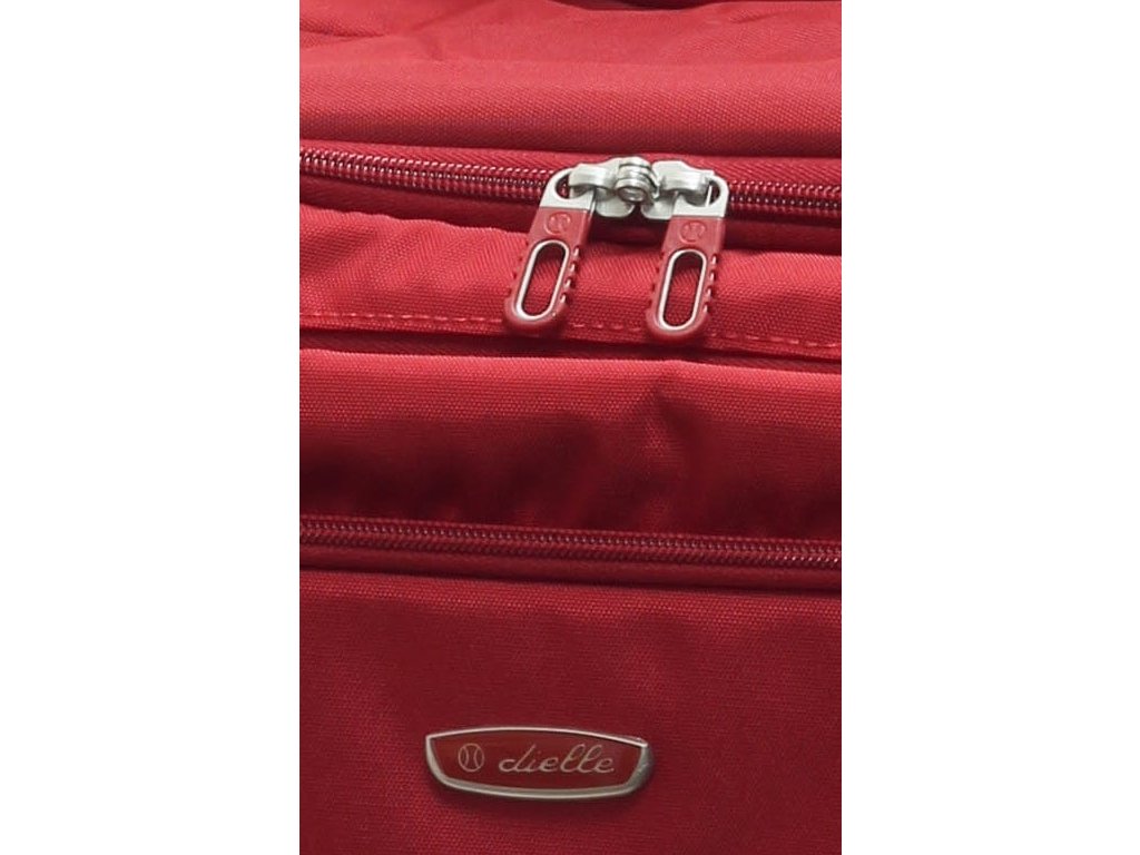 Odlehčený textilní kufr 63 cm z kolekce italské značky dielle v červené barvě.- Výsuvný hliníkový trolley s aretací polohy s možností skrýt do kapsy na zip.