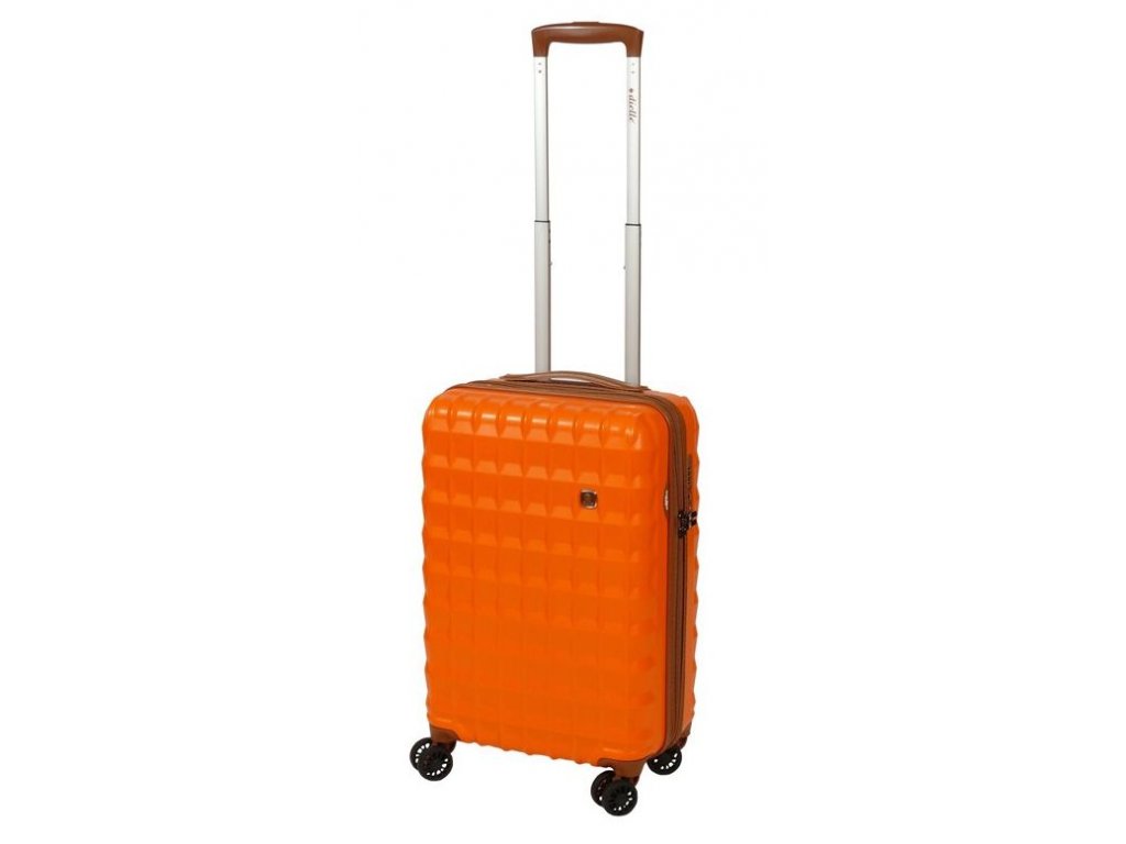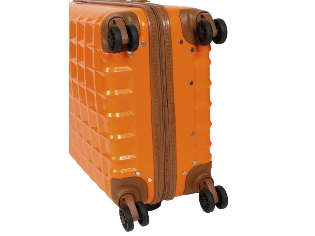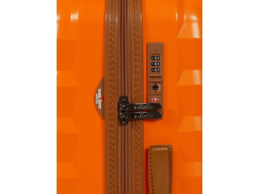 Moderní plastový kufr 55 cm značky dielle v oranžové barvě s prolisy čtverce.