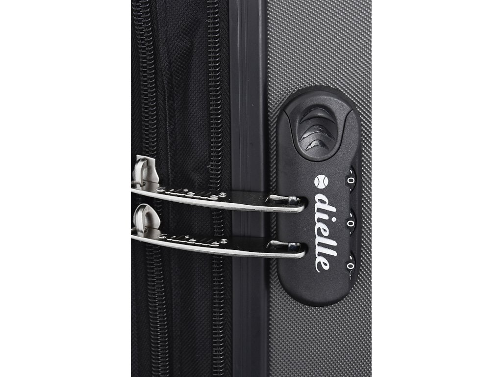 - Logo Dielle na přední straně kufru, na jezdcích zipu i na zámku