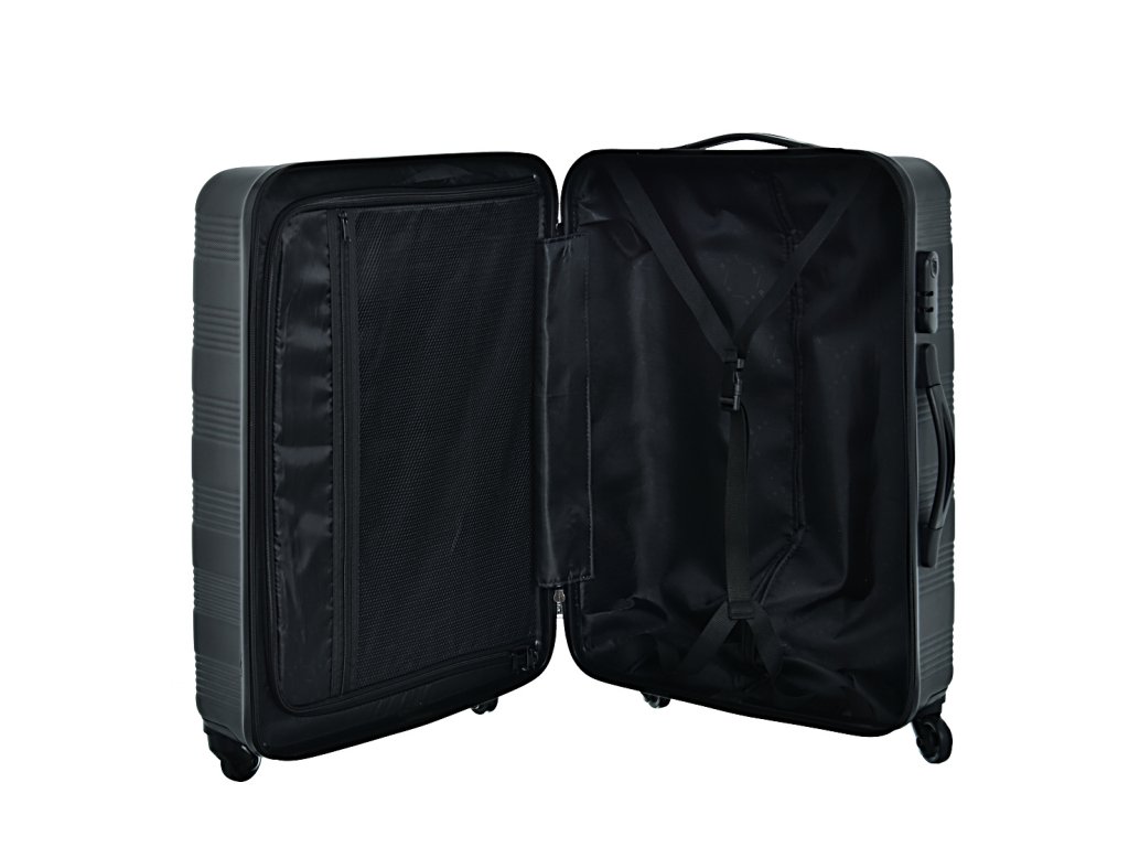 Velký plastový cestovní kufr na čtyřech kolečkách německé značky D&N v černé barvě. Tento stylově řešený kufr je vyroben z odolného plastového materiálu, který brání proti poškození při cestování. Solidní zpracování a moderní design doplňuje funkčnost a spolehlivost.