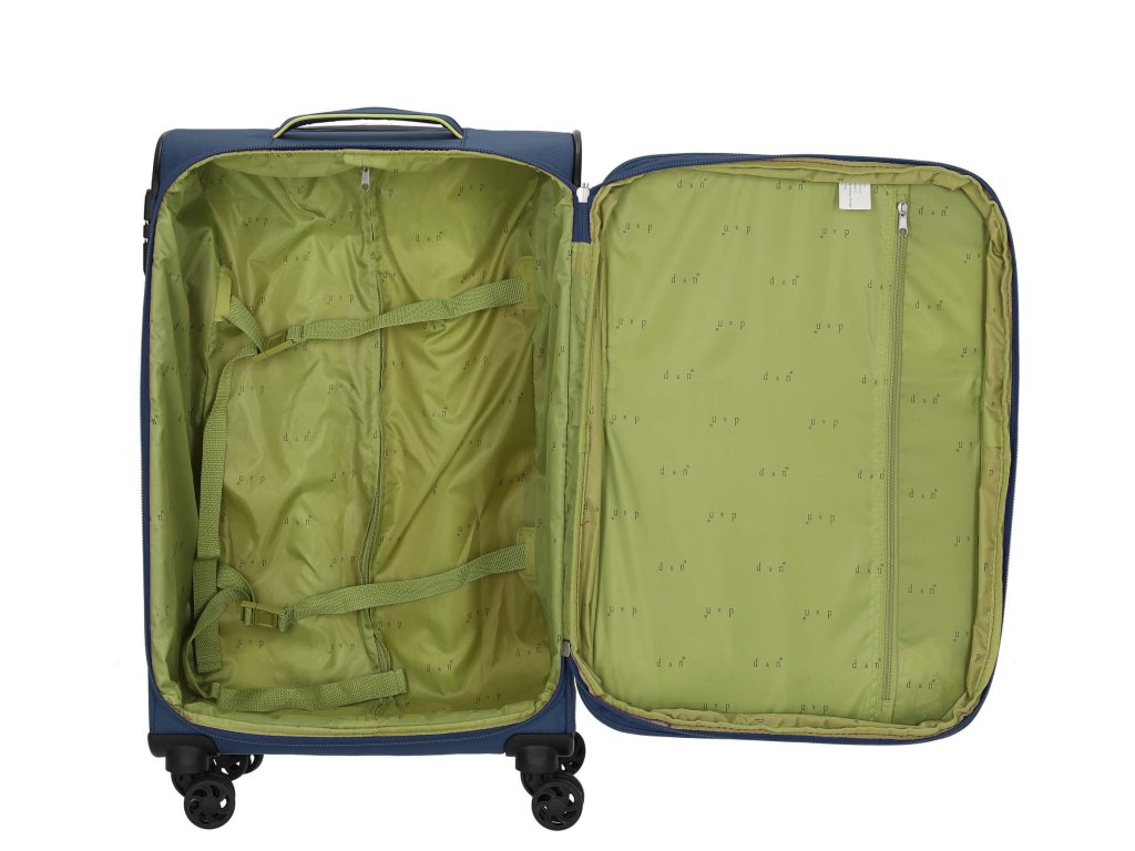Textilní odlehčený cestovní kufr německé značky D&N v atraktivní tmavě modré barvě. Tento kufr je velmi lehký a to hlavně proto, že je vyrobený z odolné textilie. Jeho snadný převoz a manipulaci s ním zajišťují 4 kolečka a výsuvná rukojeť.