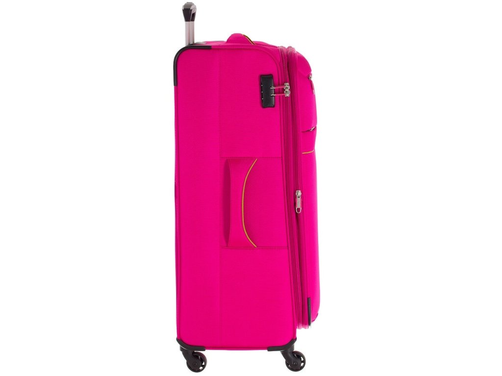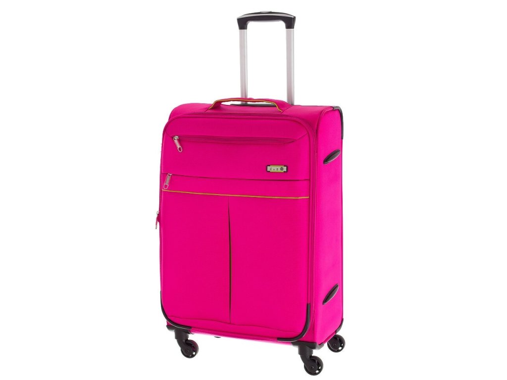 Textilní odlehčený cestovní kufr 65 cm v růžové barvě z kolekce německé značky D&N na 4 otočných kolečkách.