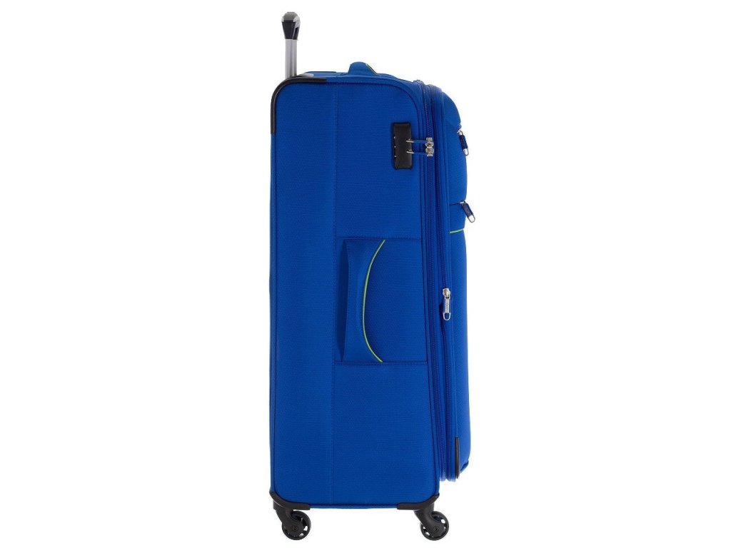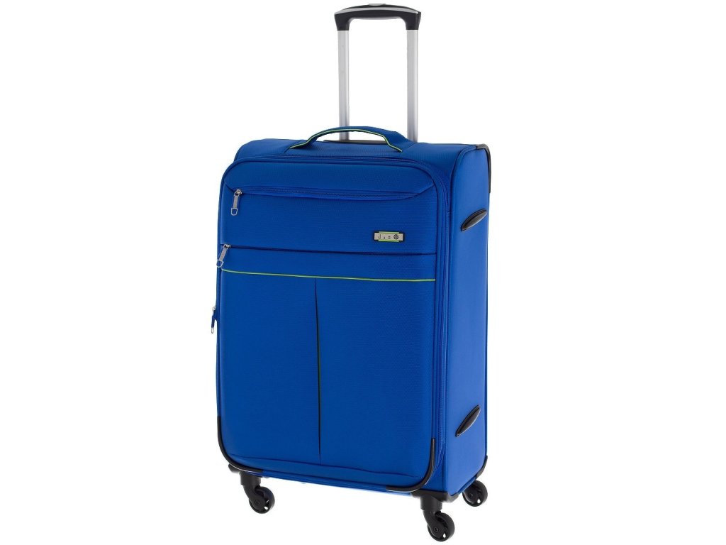 Textilní odlehčený cestovní kufr 65 cm v modré barvě z kolekce německé značky D&N na 4 otočných kolečkách.