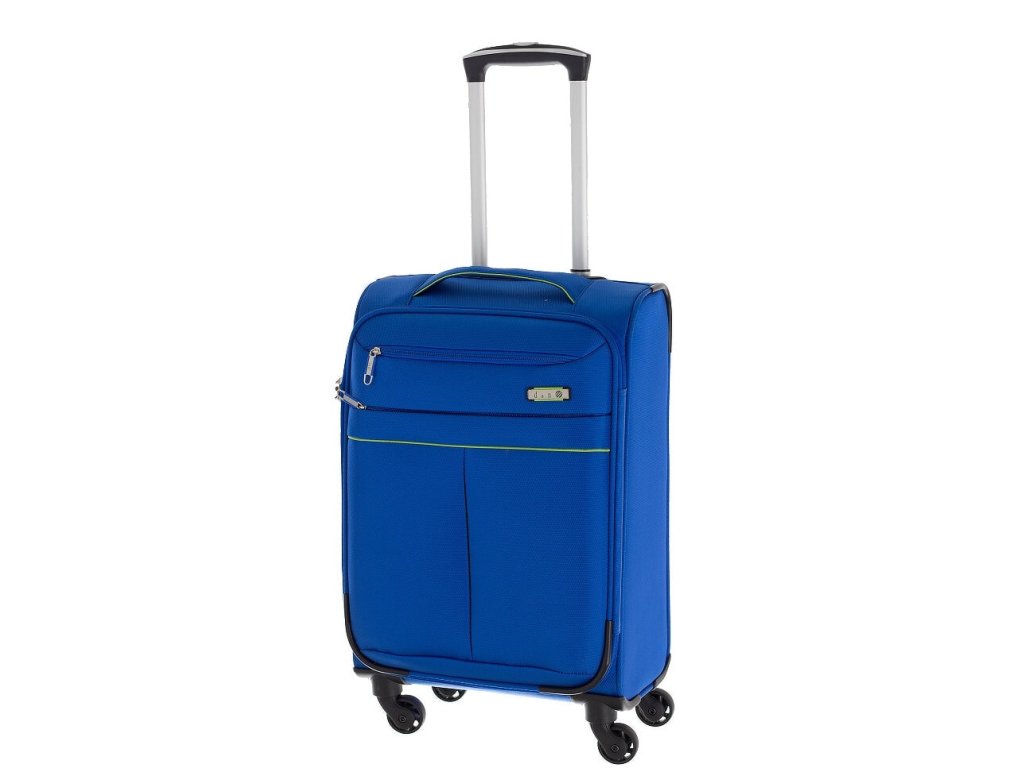 Textilní odlehčený cestovní kufr 55 cm v modré barvě z kolekce německé značky D&N na 4 otočných kolečkách.