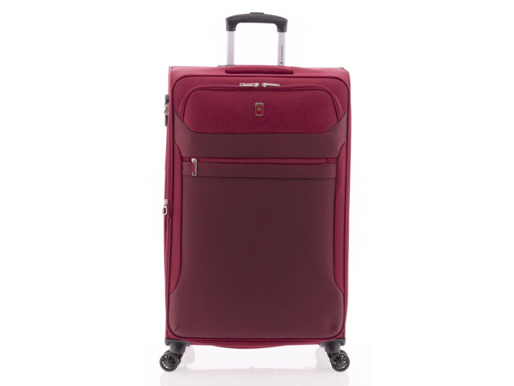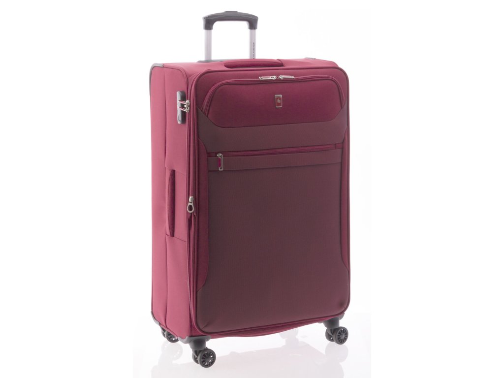 Textilní cestovní kufr 78 cm se čtyřmi kolečky španělské značky Gladiator série 3D v červené barvě. Tato kolekce vyniká elegantním designem a kvalitními materiály. Kombinuje nylon s voděodolnou syntetickou tkaninou.
