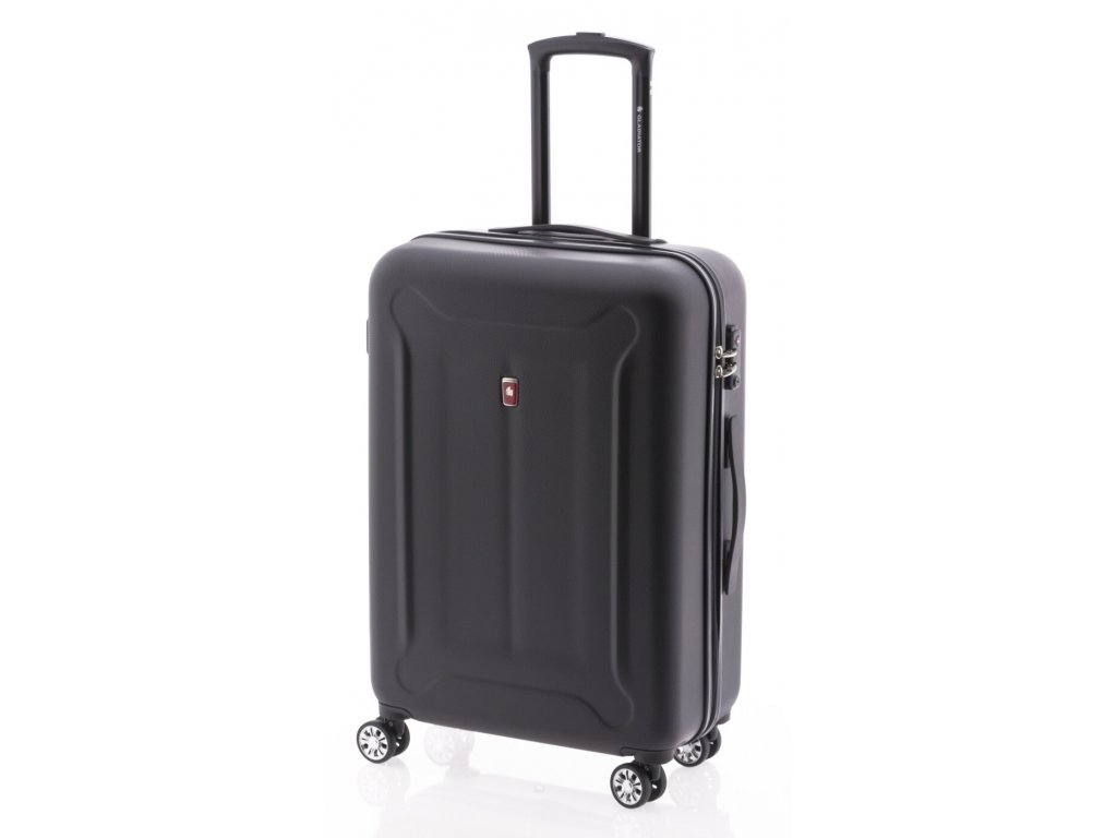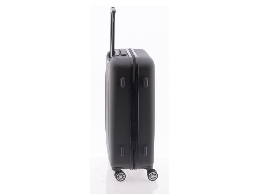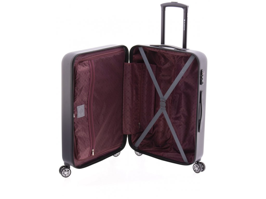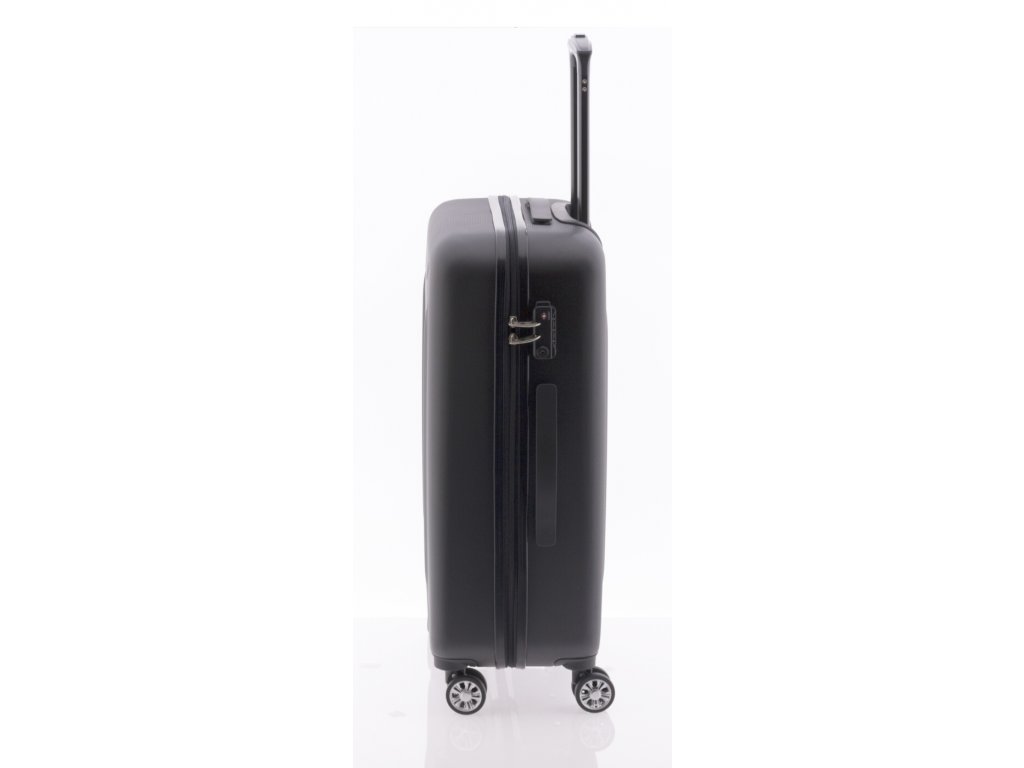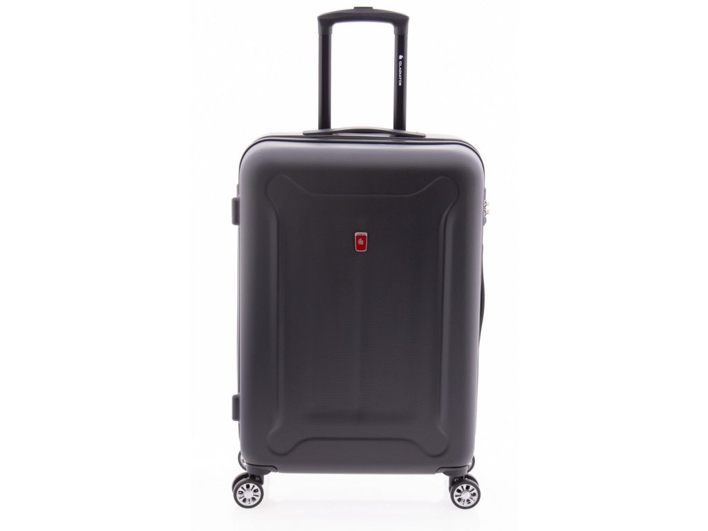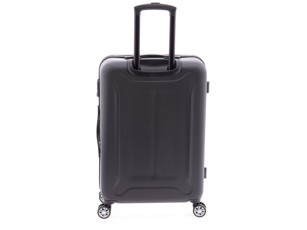 Čistě elegantní plastový kufr 68 cm španělské značky Gladiator v černé barvě linie Beetle s prolisy proužky.
