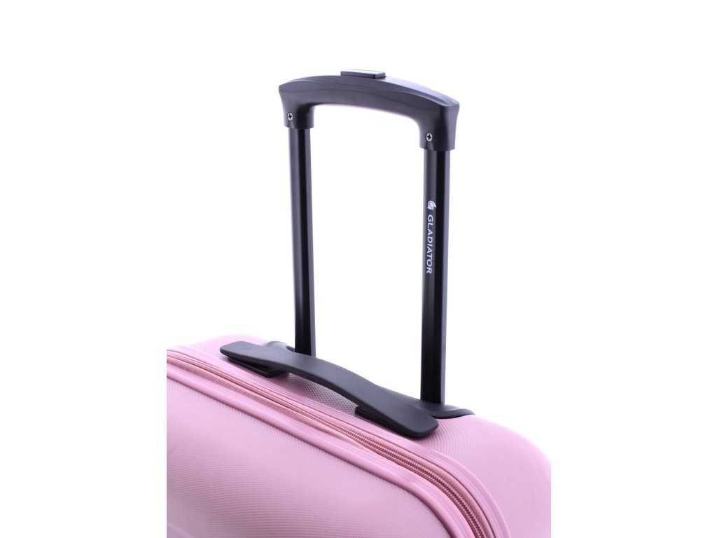 Čistě elegantní plastový kufr 68 cm španělské značky Gladiator v růžové barvě linie Beetle s prolisy proužky.