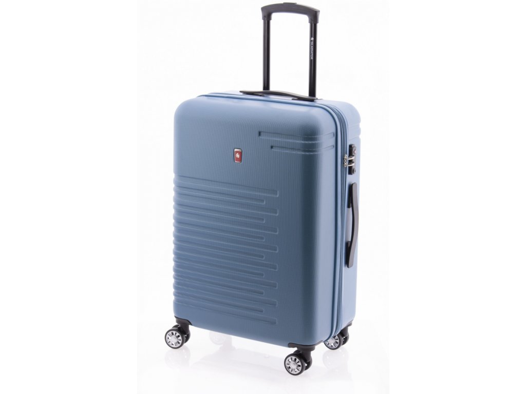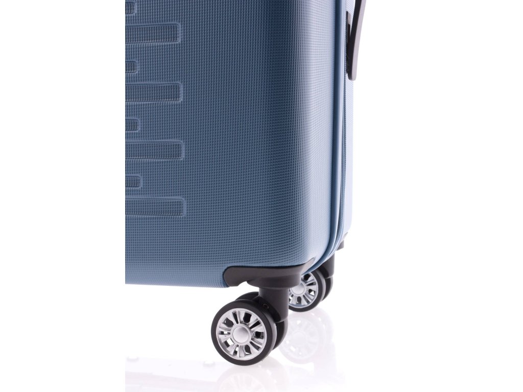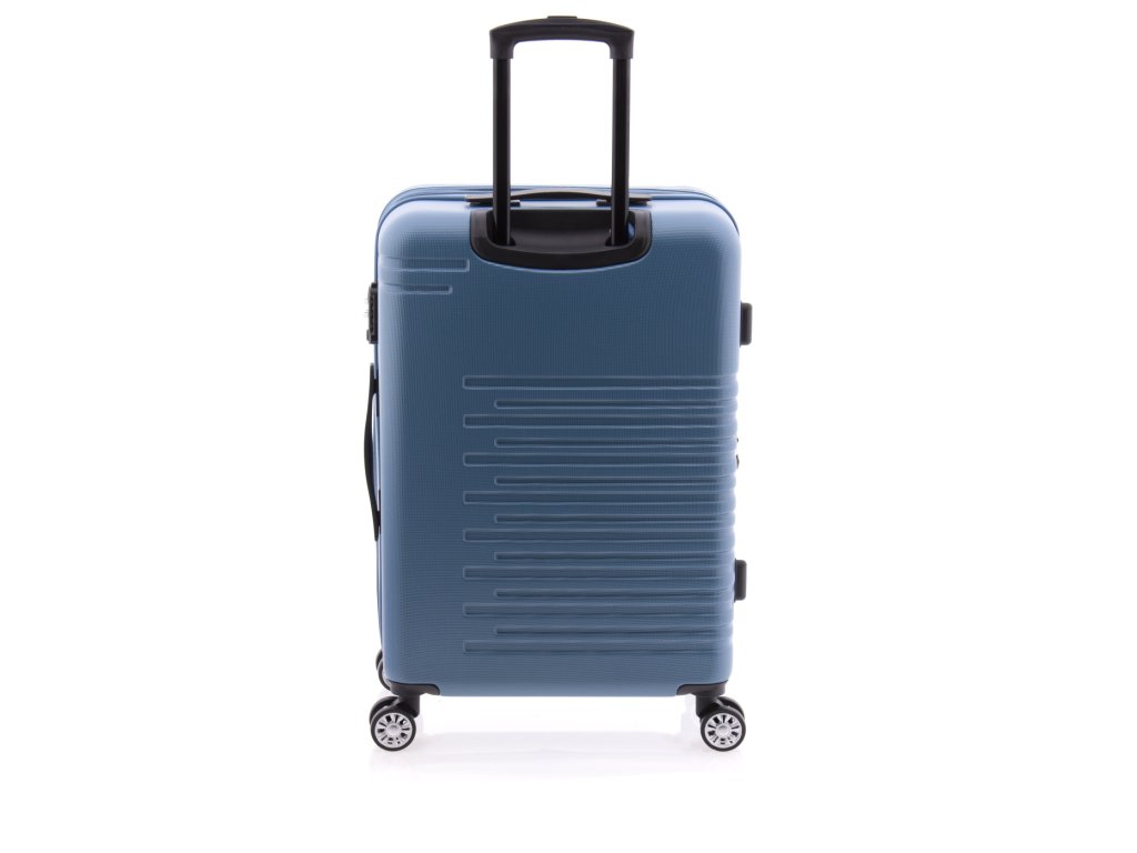 Čistě elegantní plastový kufr 66 cm španělské značky Gladiator v petrolejové barvě linie Cactus s prolisy proužky.
