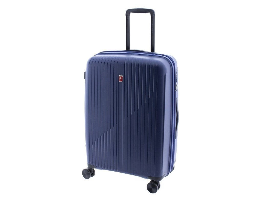 Moderní plastový kufr 63 cm španělské značky Gladiator linie CALYPSO s prolisy v oblíbené tmavě modré barvě. Tento kufr je vyroben z velmi pružného a odolného materiálu, který zaručuje perfektní podmínky pro cestování a spolehlivě ochrání vaše věci.