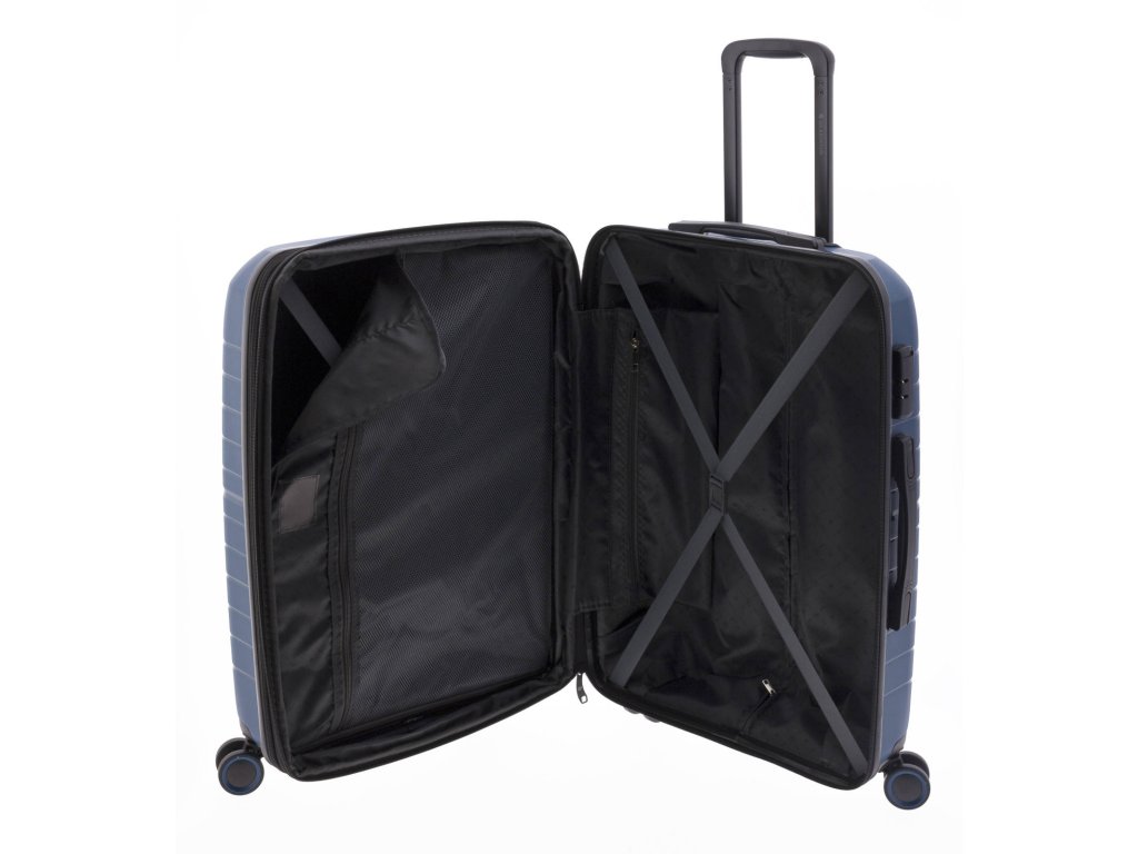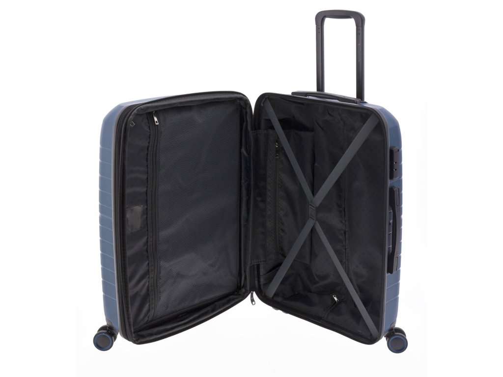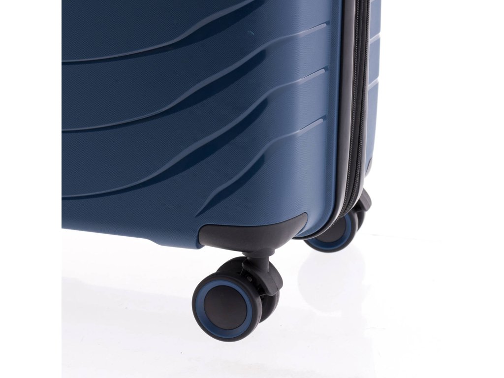 Moderní plastový kufr 67 cm španělské značky Gladiator linie Kick-off s prolisy v petrolejové barvě. Tento kufr je vyroben z velmi pružného a odolného materiálu, který zaručuje perfektní podmínky pro cestování a spolehlivě ochrání vaše věci.