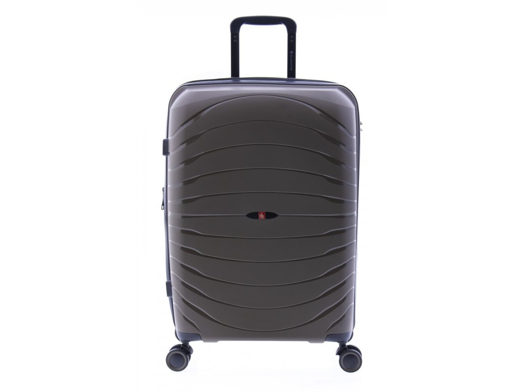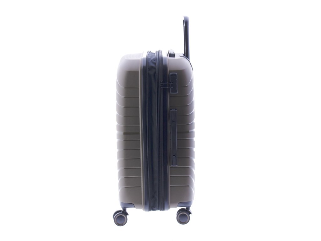 Moderní plastový kufr 67 cm španělské značky Gladiator linie Kick-off s prolisy v khaki barvě. Tento kufr je vyroben z velmi pružného a odolného materiálu, který zaručuje perfektní podmínky pro cestování a spolehlivě ochrání vaše věci.