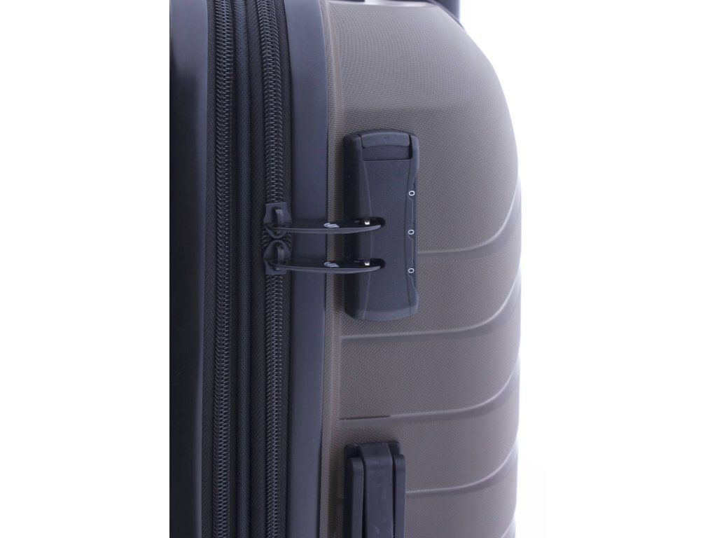 - Plně integrovaný kombinační zámek na zamknutí jezdců zipu na boční straně kufru.