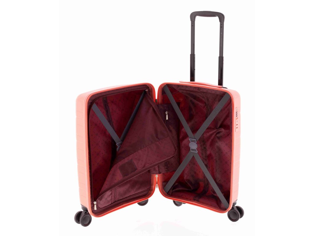 Moderní plastový kufr 55 cm španělské značky Gladiator linie Magic s prolisy v broskvové (dle výrobce peach pink) barvě. Linie Magic je čistá fantasy. Je vyrobena z lehkého a odolného polypropylenu a je určena pro ty, kteří chtějí vyniknout a cestovat stylově. Jeho odvážný a originální design evokuje iluzi magie s dynamickými liniemi a zářivými barvami, které jako by ožily v jakémkoli prostředí. S Magic je každý detail vytvořen tak, aby ohromil, s interiérem navrženým tak, aby maximalizoval prostor téměř magicky. Magie vás zavede dále, než jste si kdy představovali, a promění každou cestu ve velkolepý zážitek.