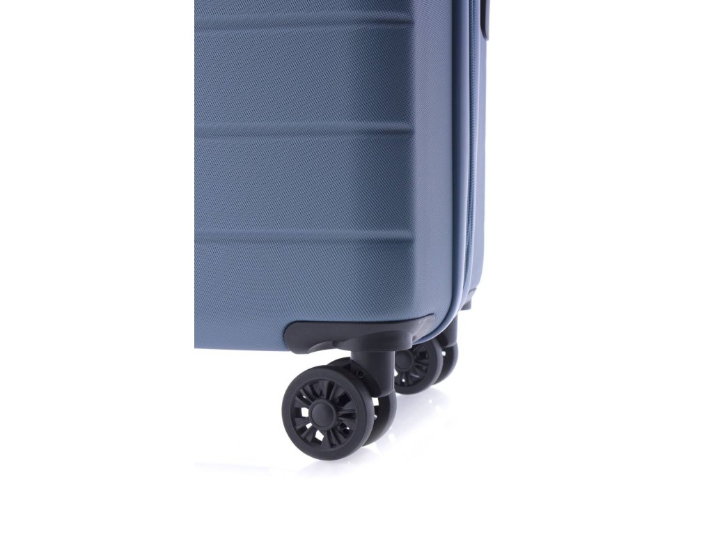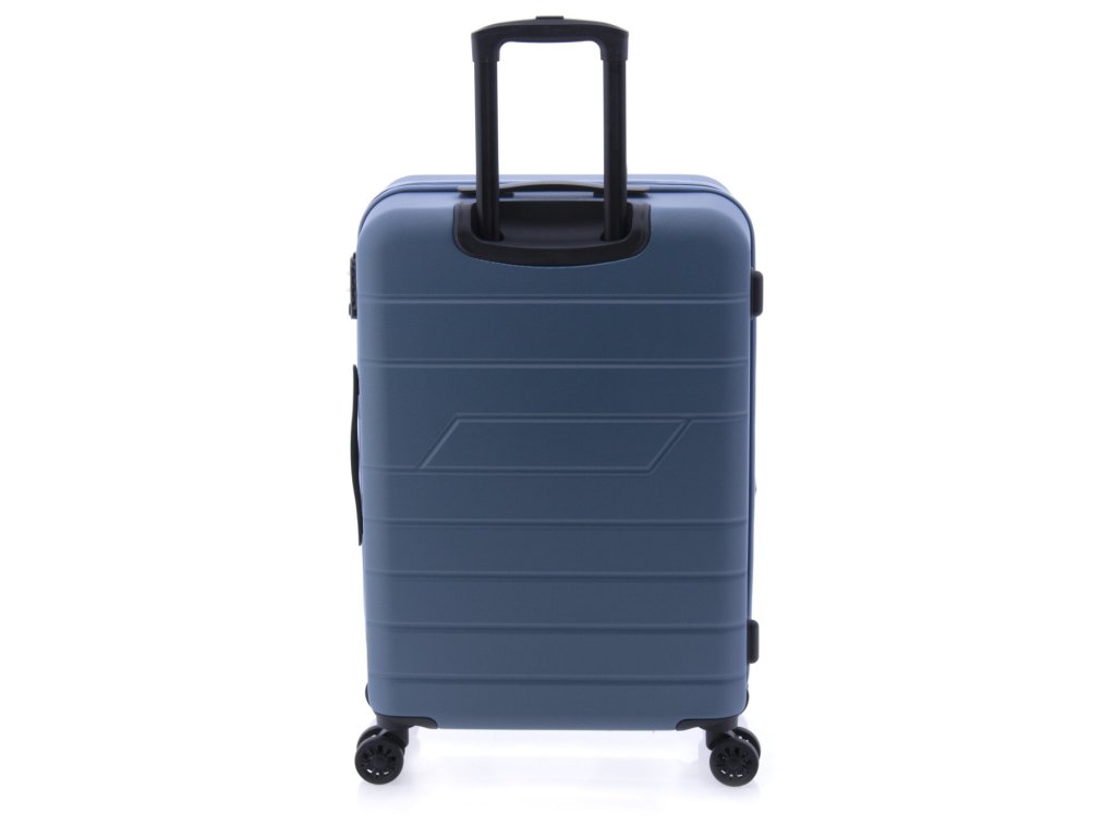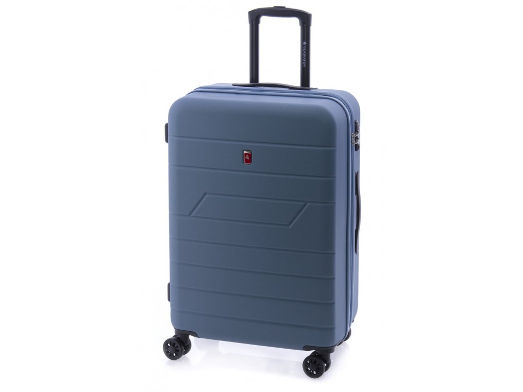Čistě elegantní plastový kufr 65 cm španělské značky Gladiator v petrolejové barvě linie Mambo s prolisy proužky.