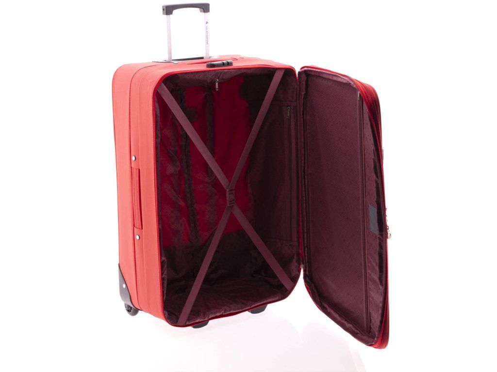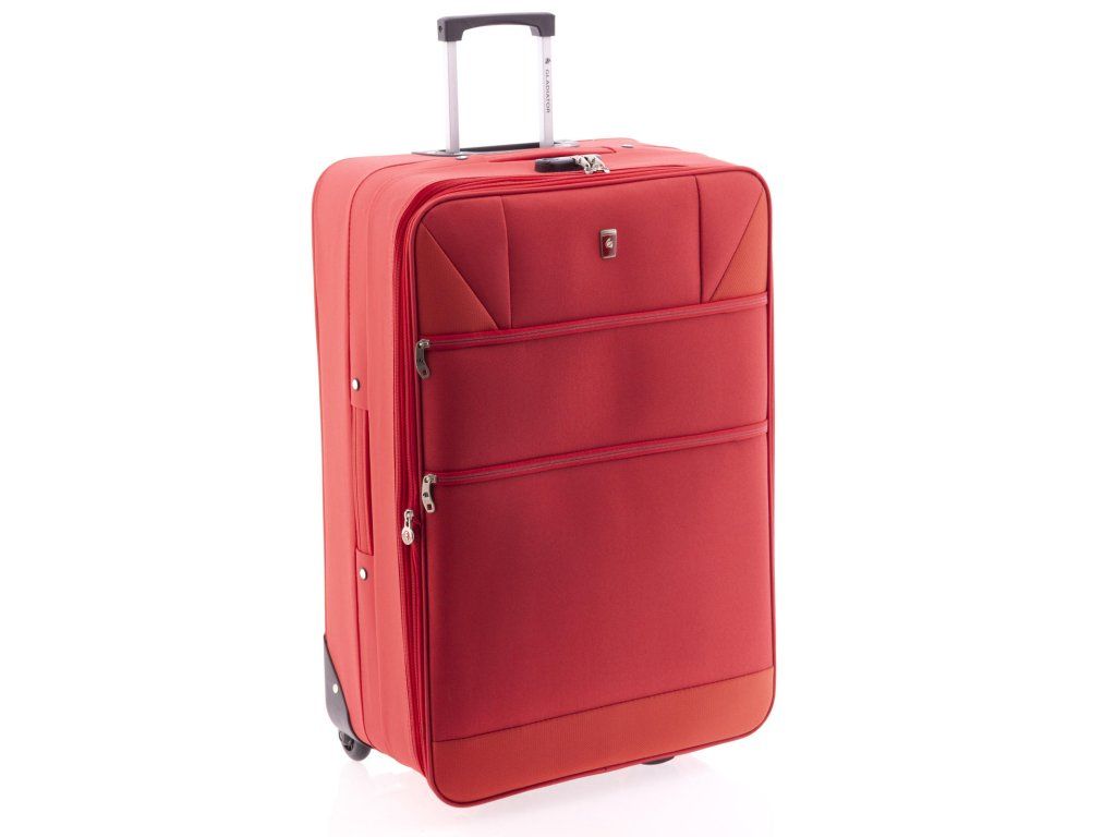 Textilní cestovní kufr 72 cm na kolečkách španělské značky Gladiator série Metro v červené barvě. Tato kolekce kombinuje nylon s polyesterem.