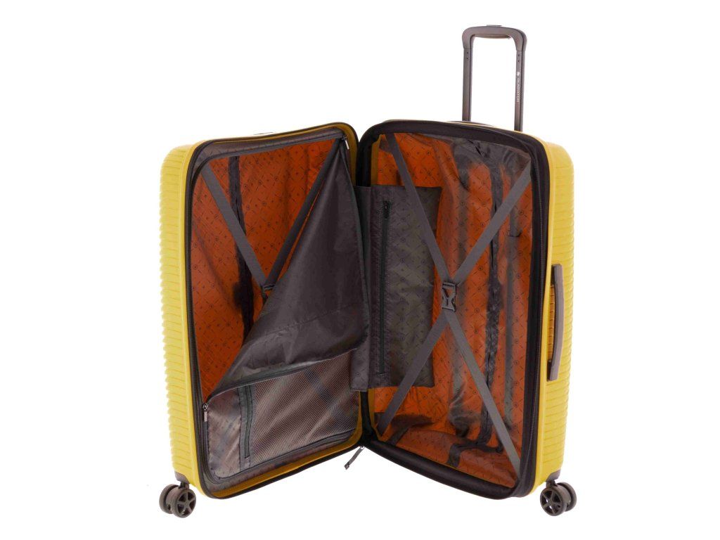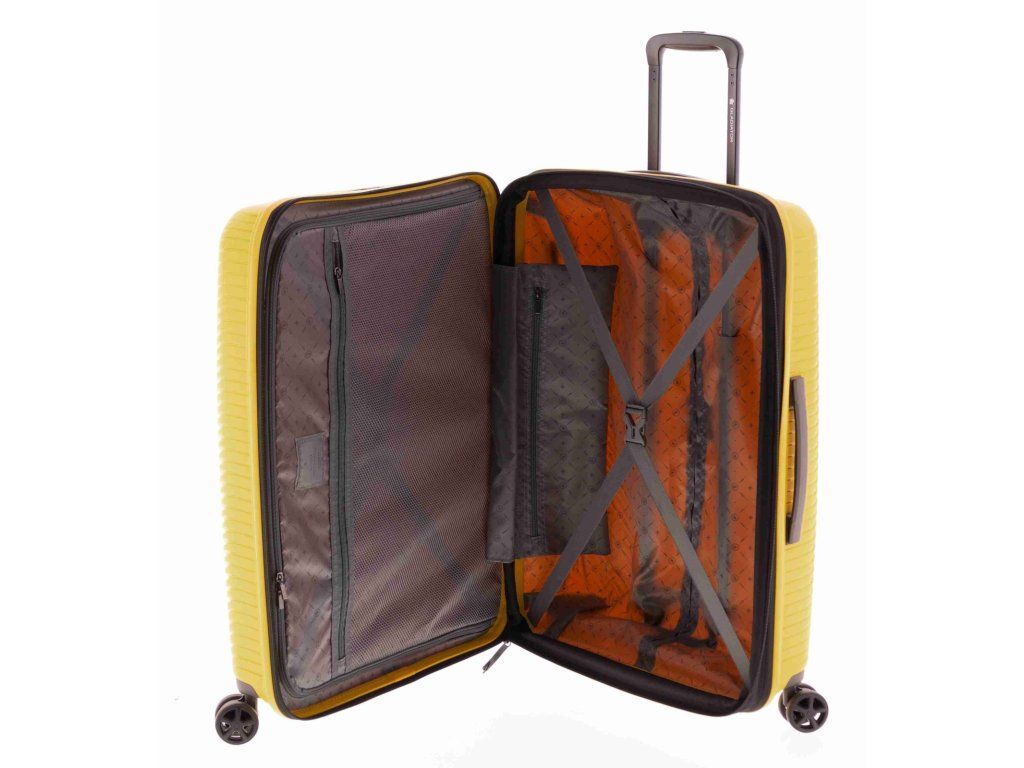 Moderní plastový kufr 67 cm španělské značky Gladiator linie Vincent s prolisy ve žluté barvě. Kolekce Vincent, inspirovaná genialitou Vincenta van Gogha, vdechuje umění život v pohybu. Je vyrobena ze superodolného polypropylenu a kombinuje lehkost, odolnost a texturovaný design přední strany, který odráží živé tahy štětcem nizozemského mistra. Díky špičkovému systému zipů a rozšiřitelným funkcím spojuje praktičnost se stylem v kusu navrženém tak, aby vydržel a vynikl.