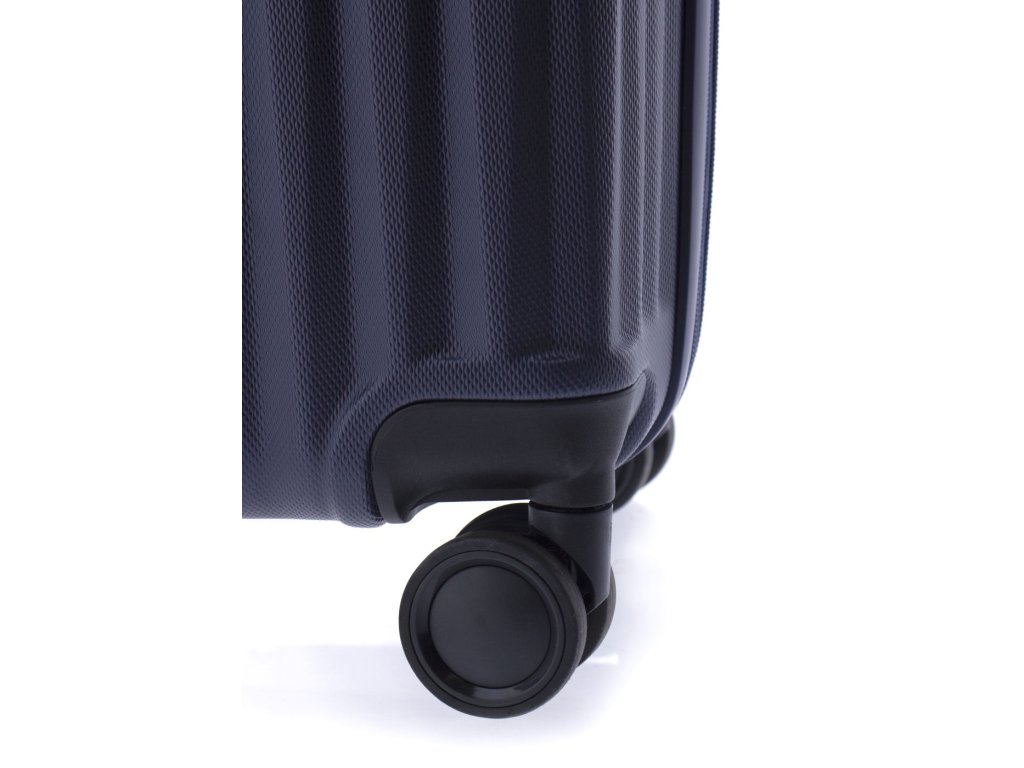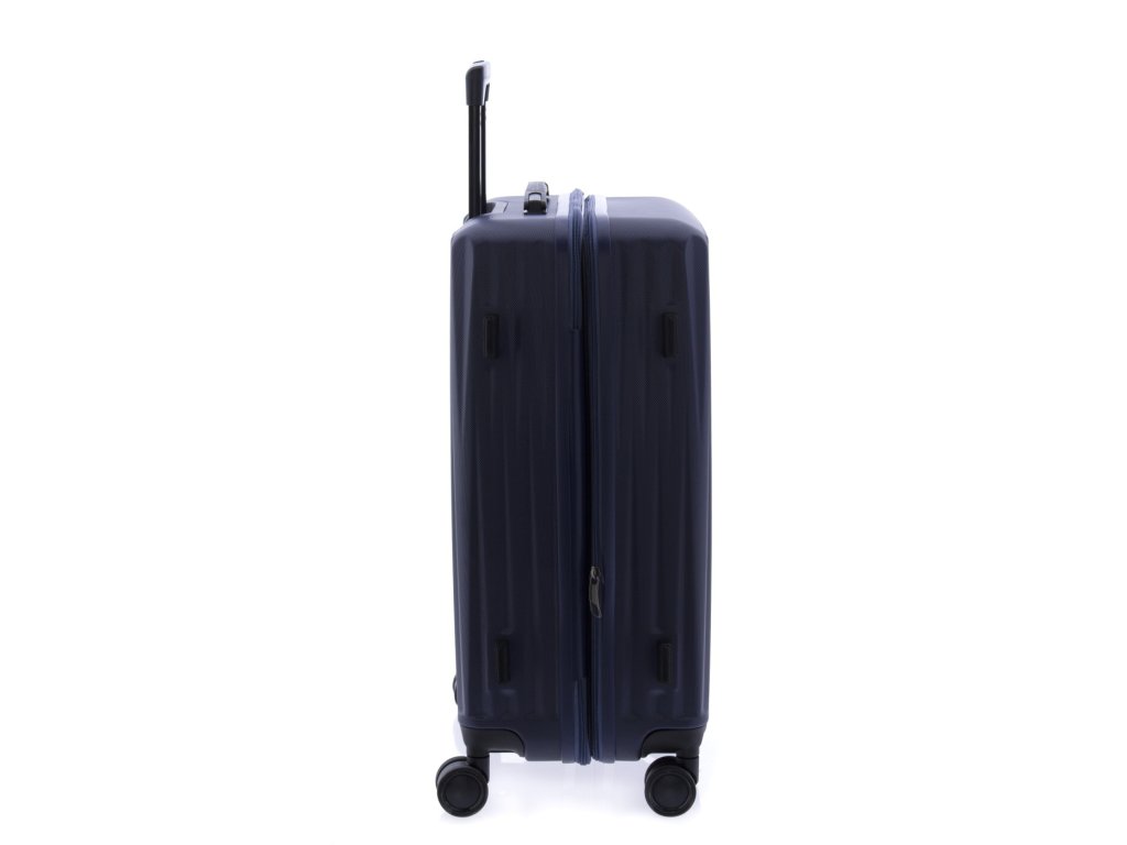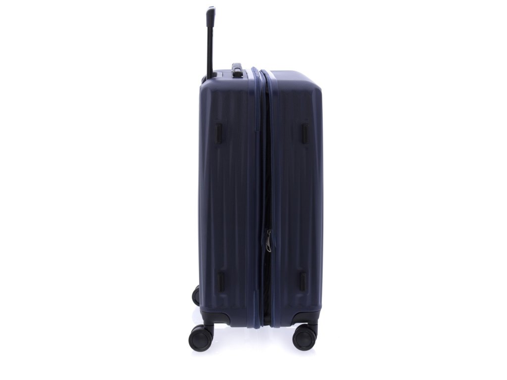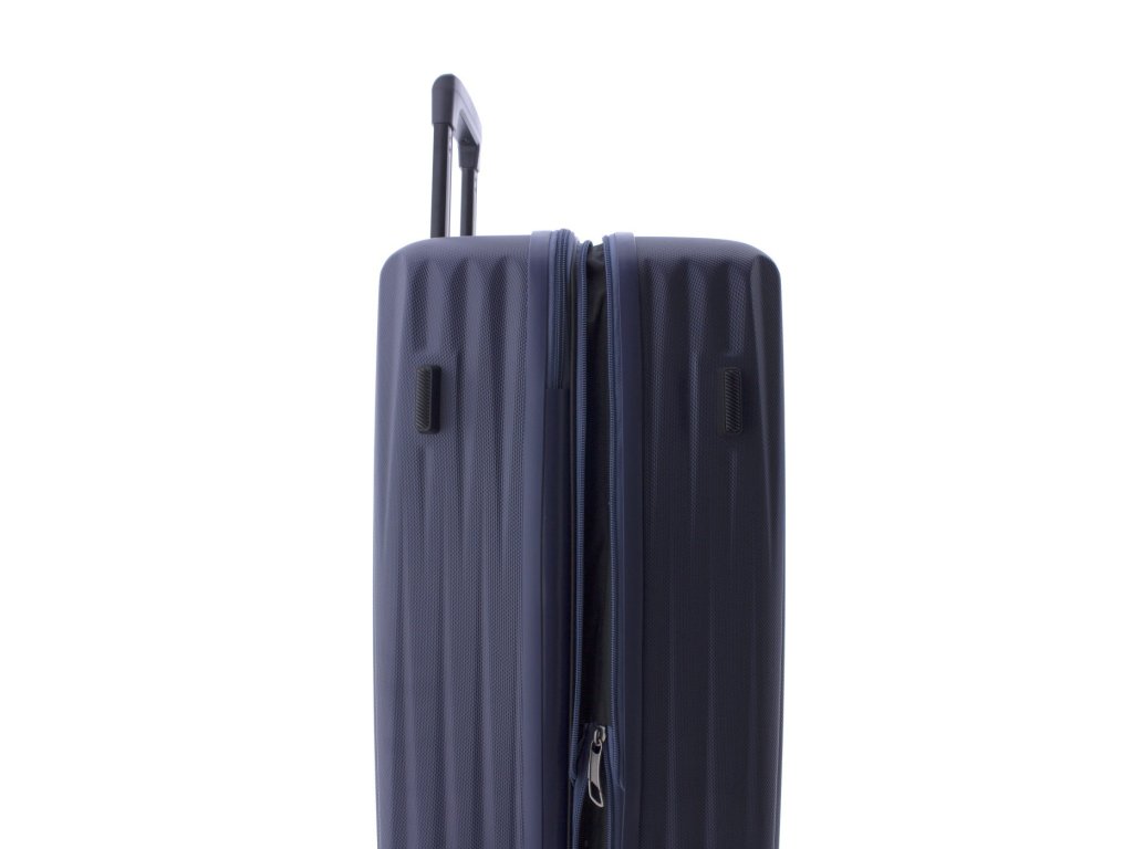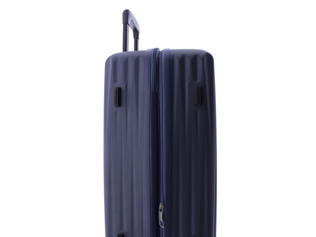 Elegantní plastový kufr 65 cm španělské značky John Travel v tmavě modré barvě linie Diamond s prolisy proužky. Tento cestovní kufr je vyroben z ABS materiálu.