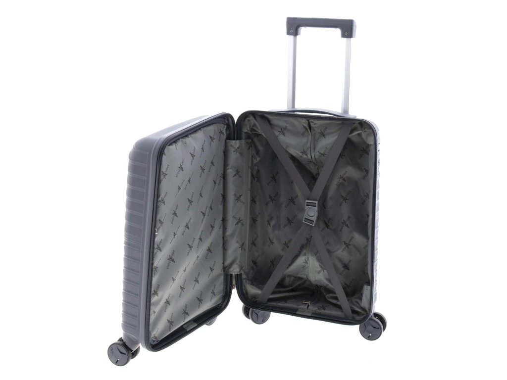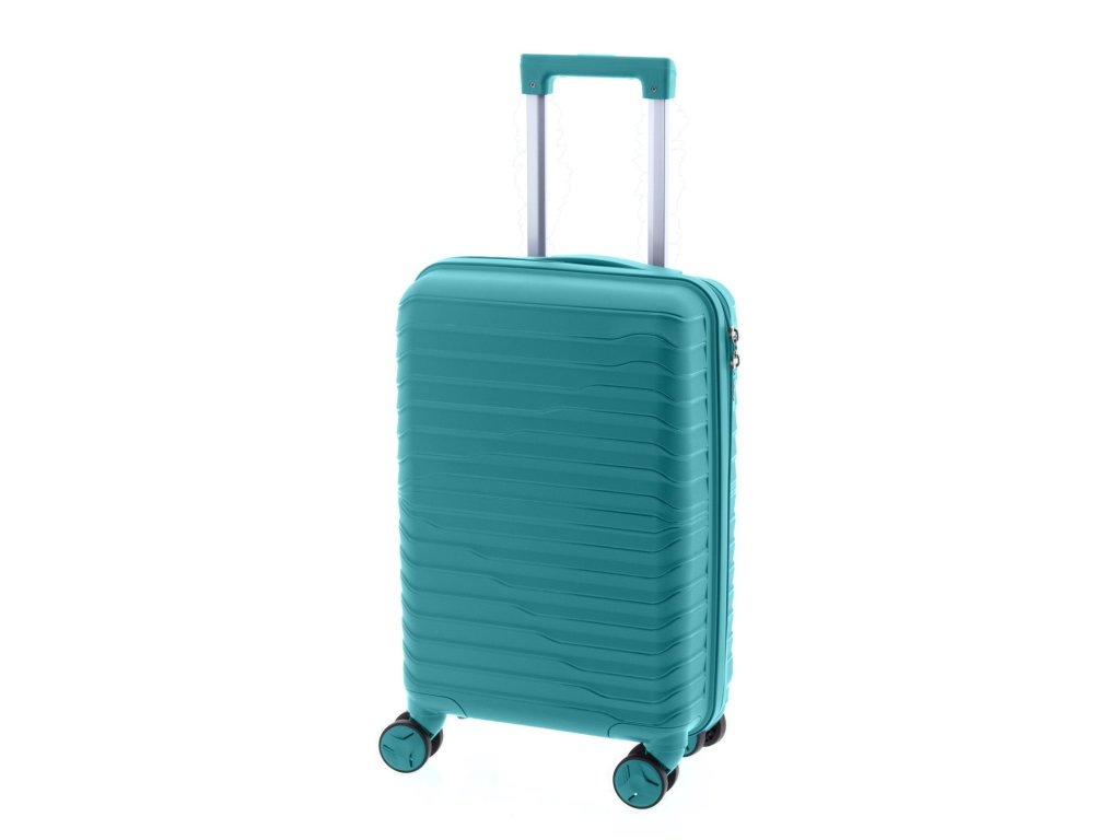 Elegantní plastový kufr 52 cm španělské značky John Travel linie Arcadia s prolisy proužky v tyrkysové barvě. Vydejte se na cesty stylově a spolehněte se na kvalitní kufry značky John Travel, které jsou vyrobeny z velmi odolného materiálu polyproplylen.