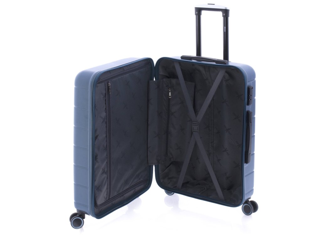 - Kombinační zámek na zamknutí jezdců zipu na boční straně kufru.