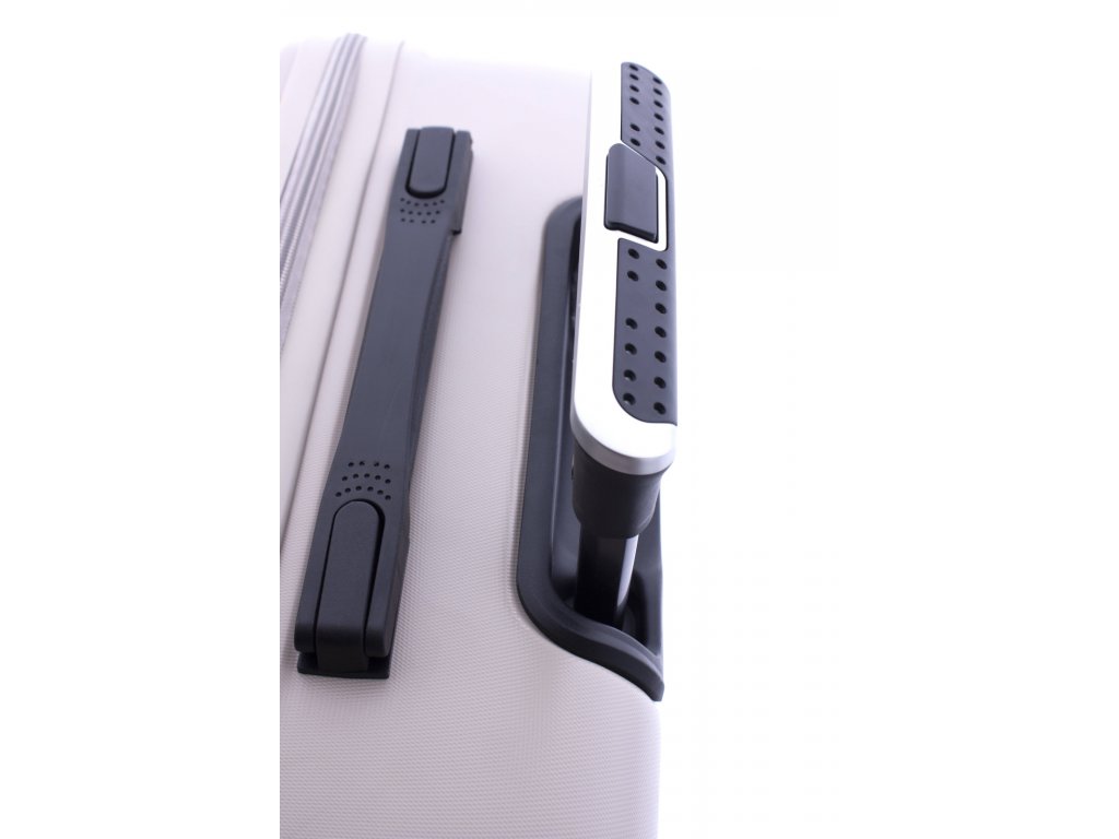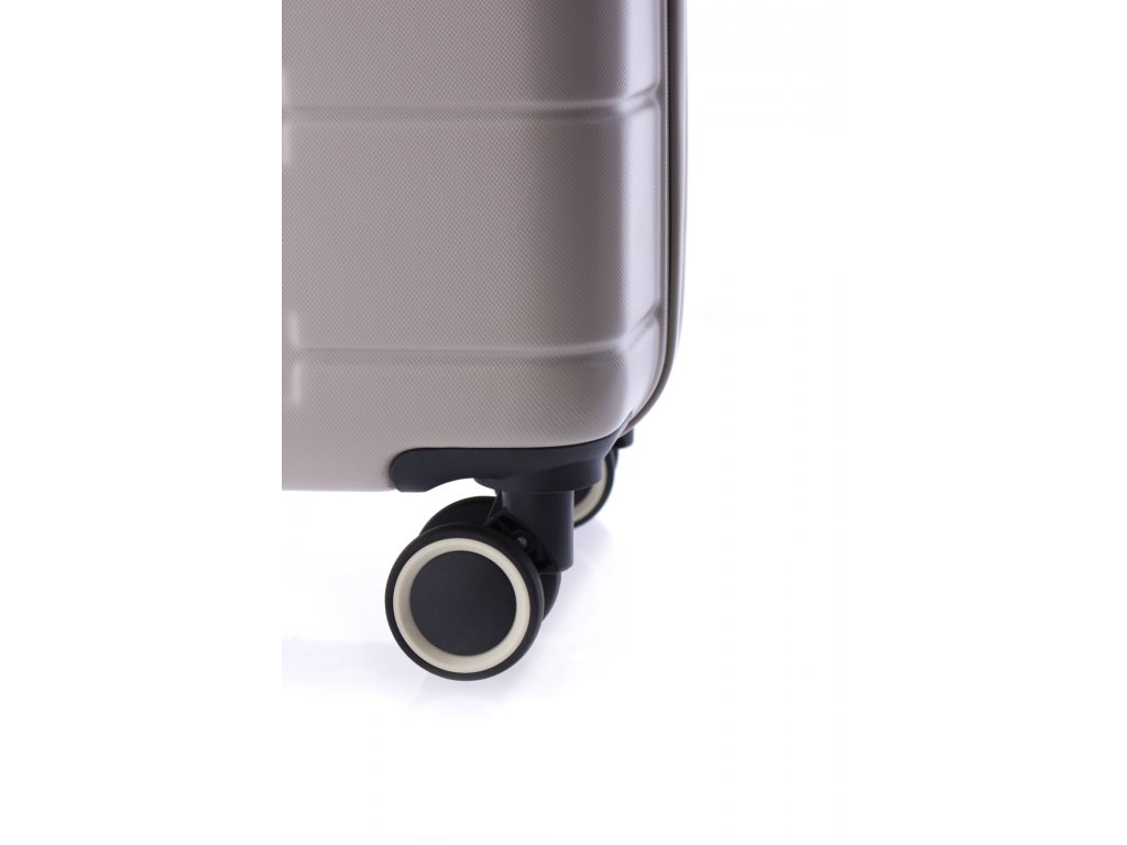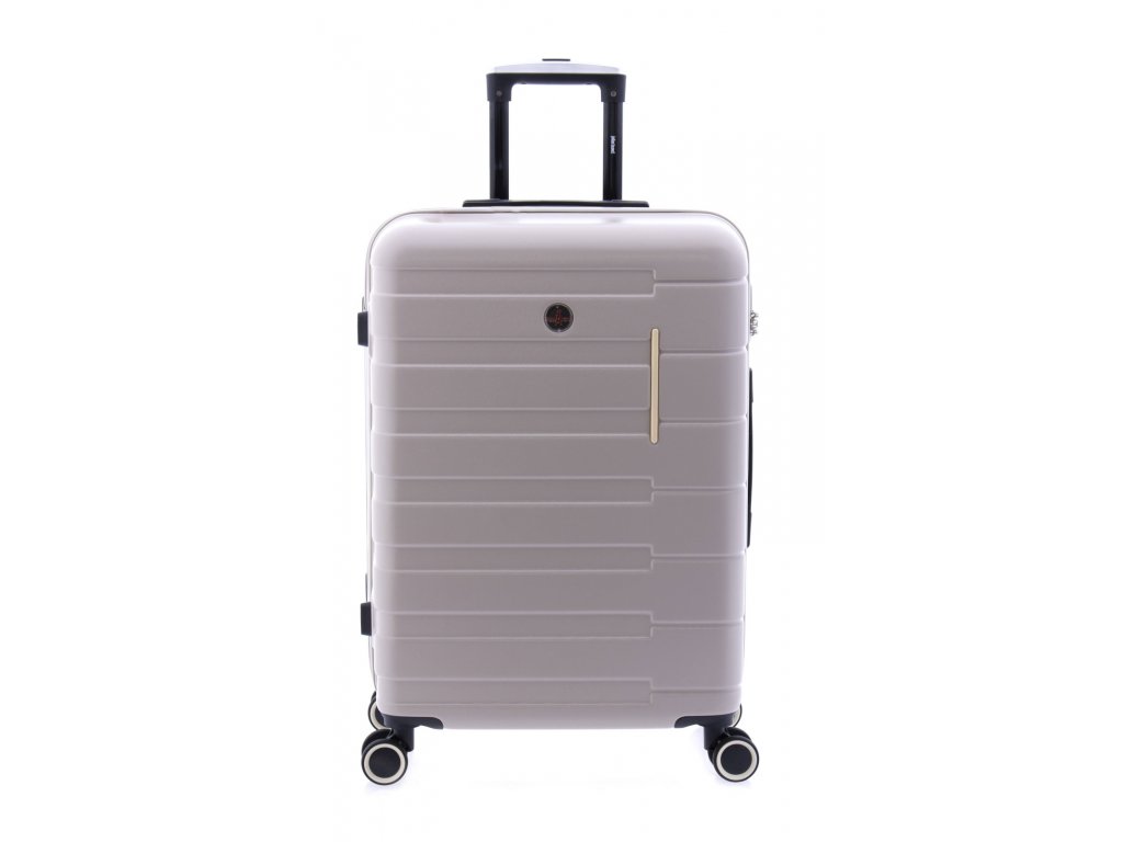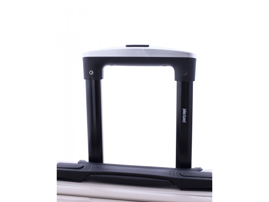 Elegantní plastový kufr 66 cm španělské značky John Travel v béžové barvě linie Marshal s prolisy proužky. Tento cestovní kufr je vyroben z ABS materiálu.