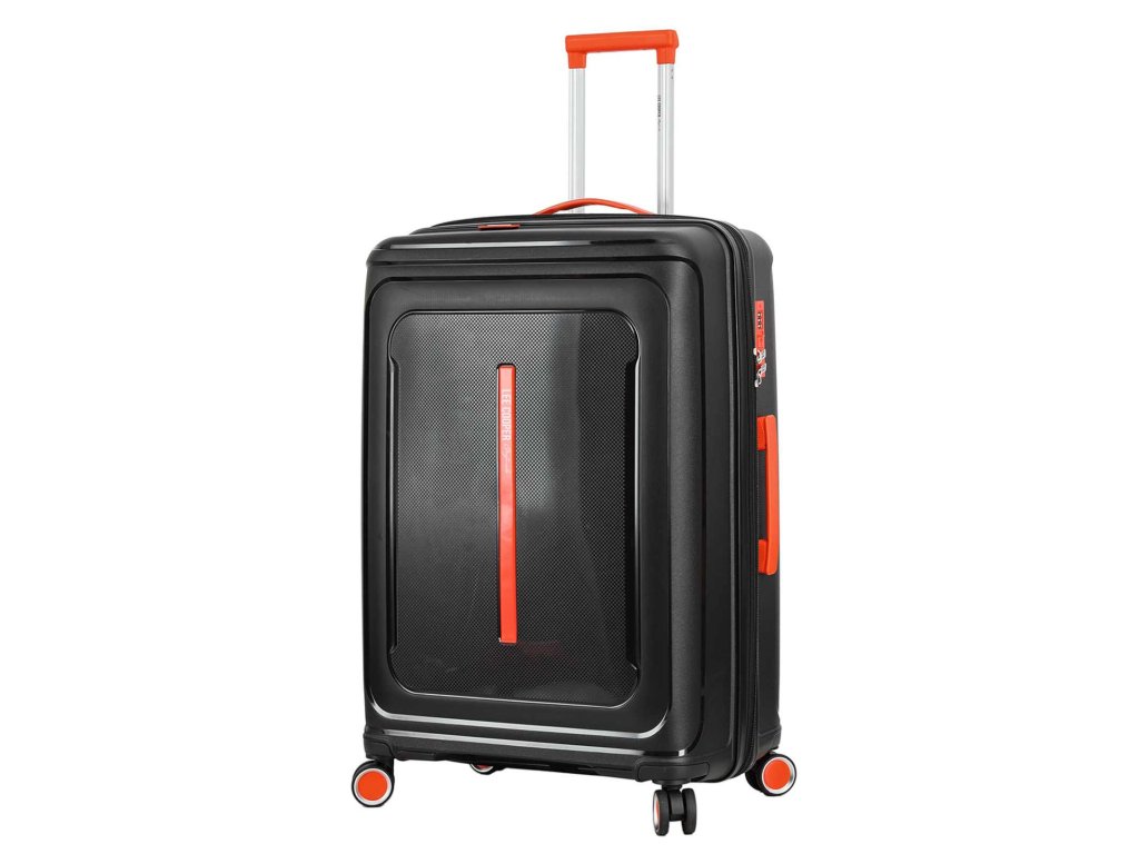 Cestovní plastový kufr 77 cm značky Lee Cooper v oblíbené černé barvě s doplňky v červené barvě. Polypropylenový kufr nabízí hned řadu výhod, a to nízkou hmotnost, téměř nulovou rozbitnost, cenovou dostupnost pro každého, solidní zpracování a v neposlední řadě také elegantní vzhled.