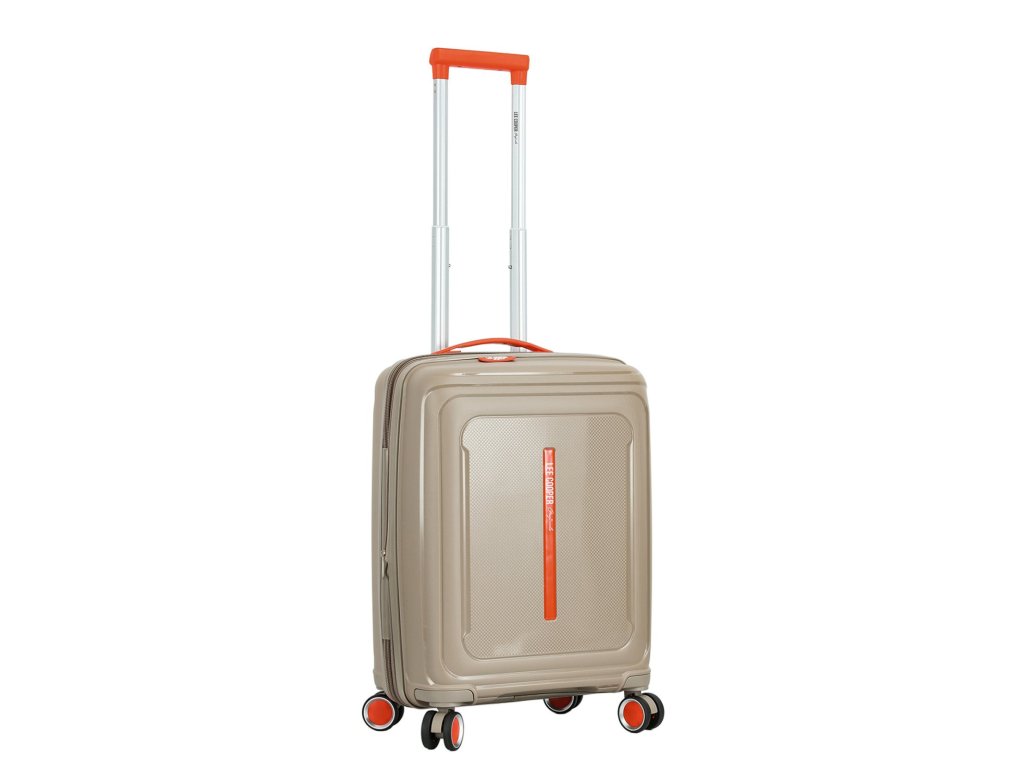 Cestovní kabinový kufr značky Lee Cooper v šampaňské barvě s doplňky v červené barvě. Polypropylenový kufr nabízí hned řadu výhod, a to nízkou hmotnost, téměř nulovou rozbitnost, cenovou dostupnost pro každého, solidní zpracování a v neposlední řadě také elegantní vzhled.