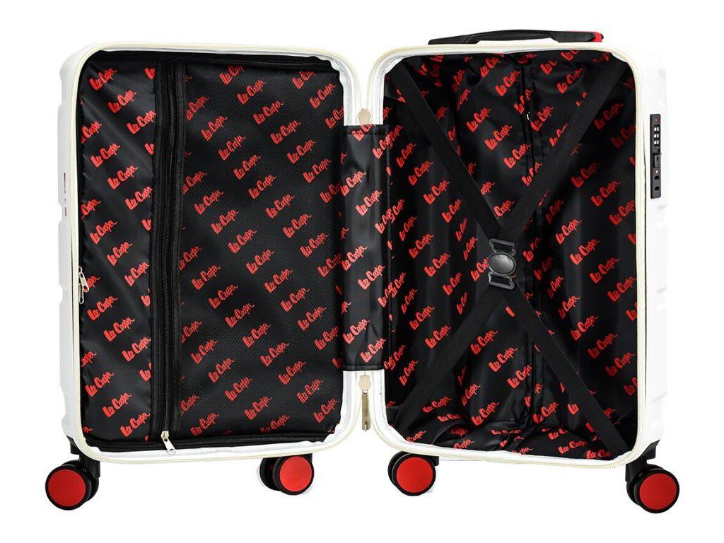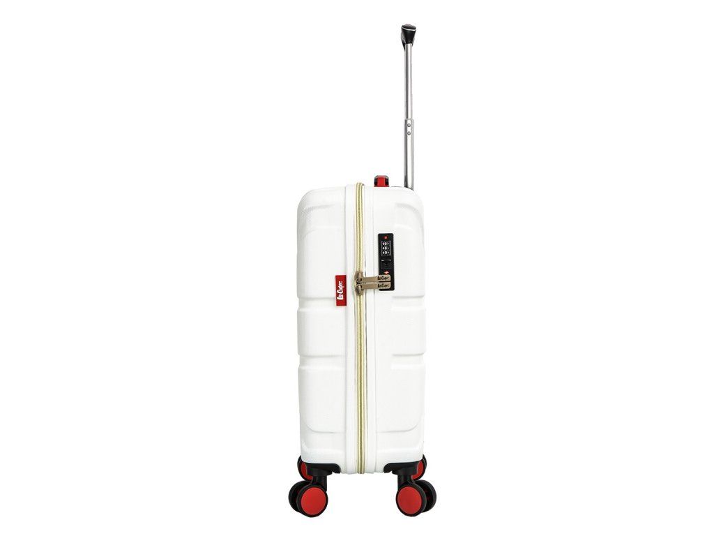Cestovní kabinový kufr značky Lee Cooper v bílé barvě, který nabízí hned řadu výhod, a to nízkou hmotnost, cenovou dostupnost pro každého, kvalitní zpracování a v neposlední řadě také elegantní a moderní drážkovaný vzhled.