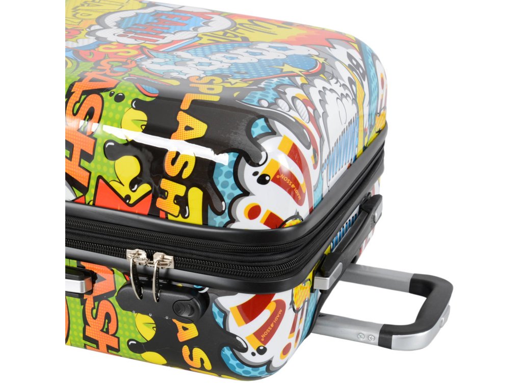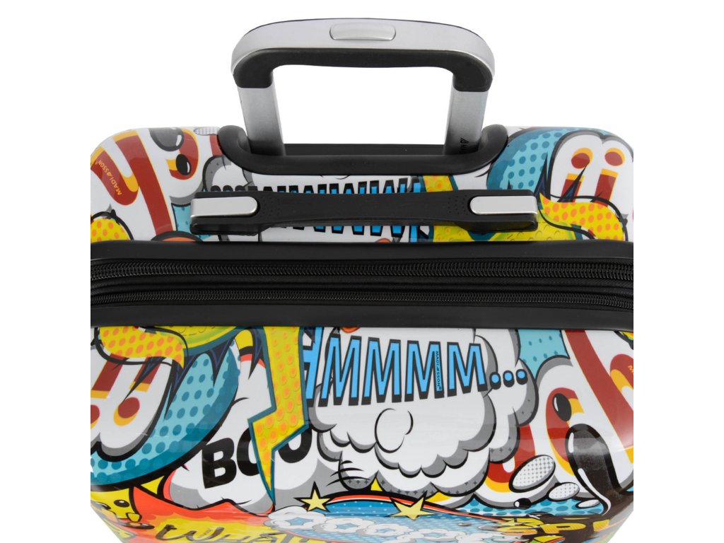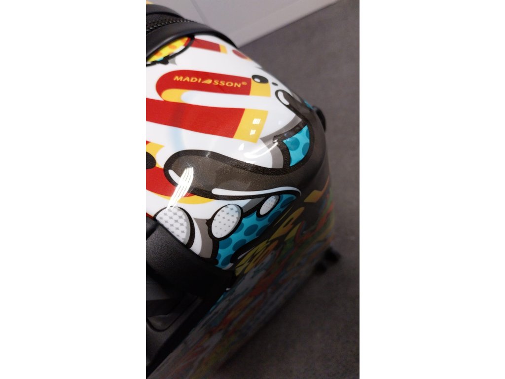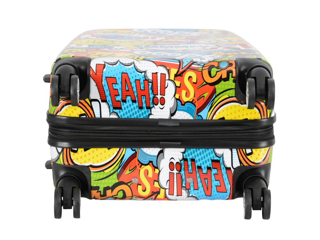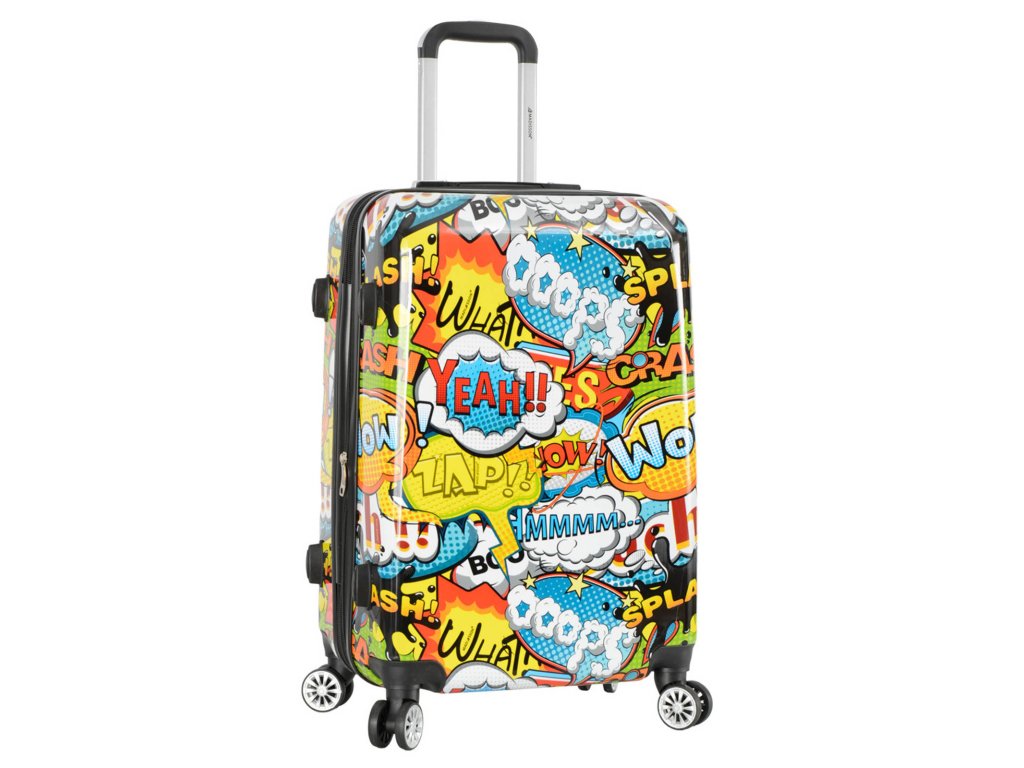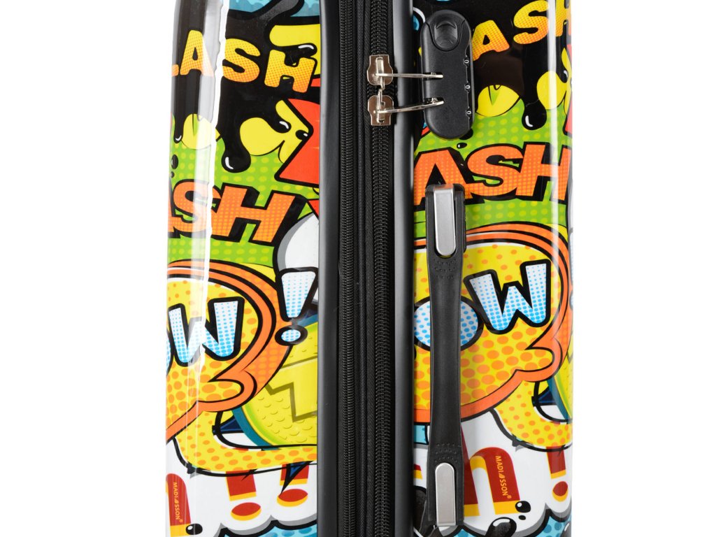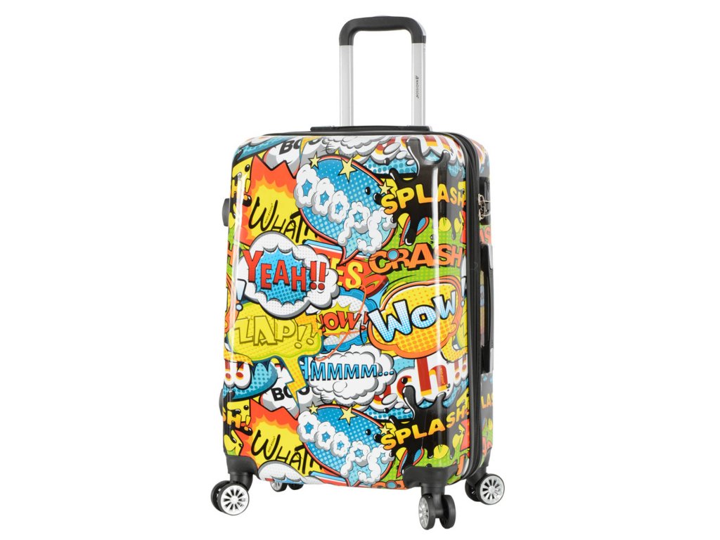 Cestovní kufr 66 cm v moderním designu francouzské značky Madisson s motivem komiksových bublin. Má jedinečný vzhled, který jej odlišuje od ostatních zavazadel svým neobvyklým a barevným potiskem.