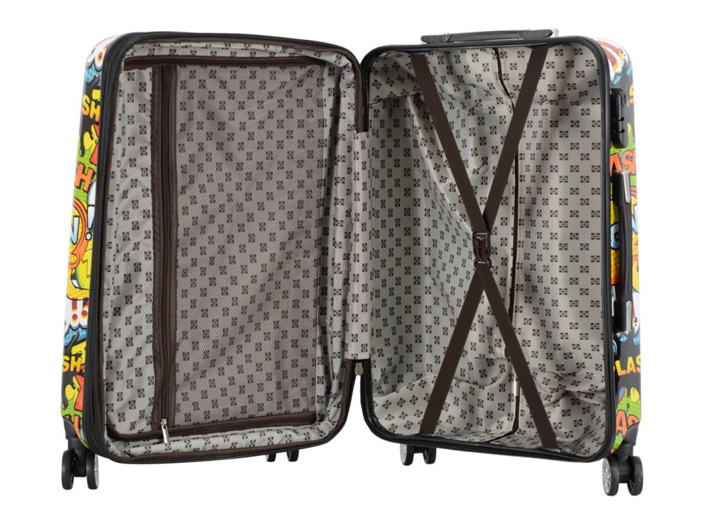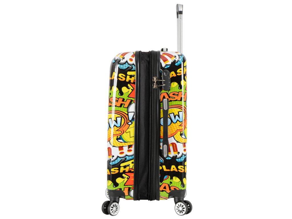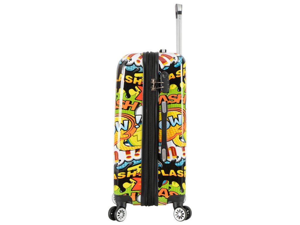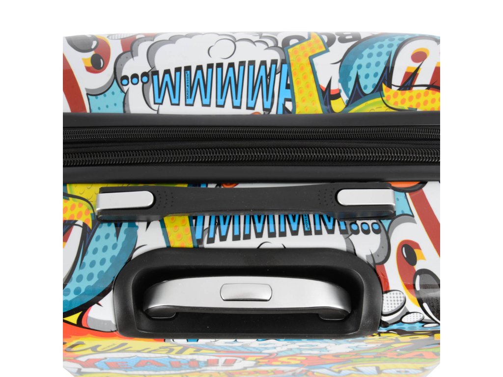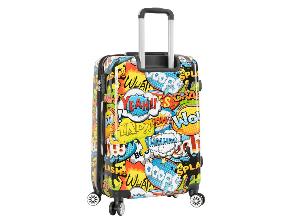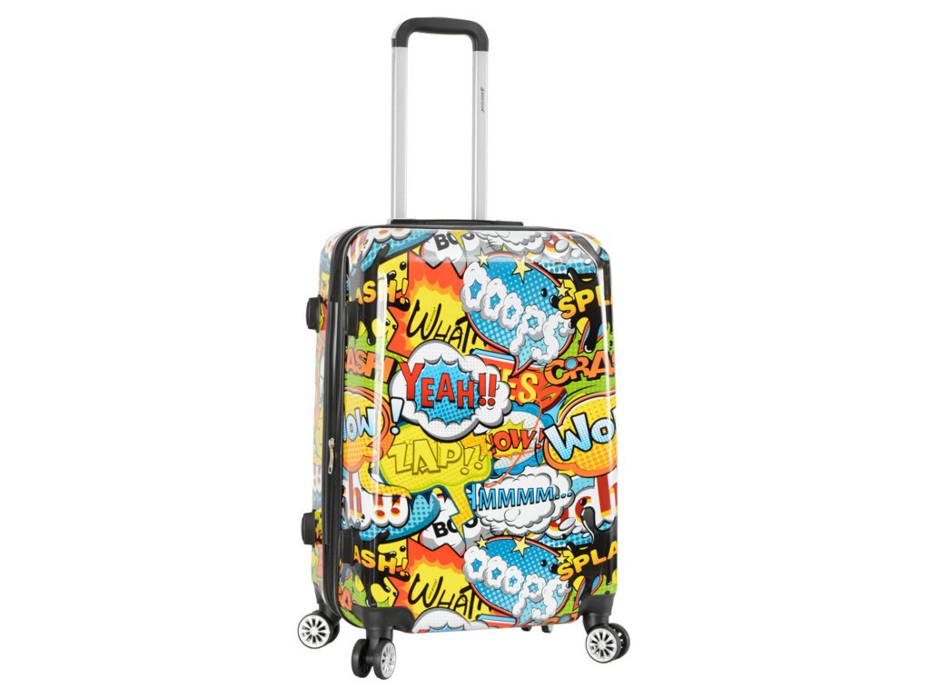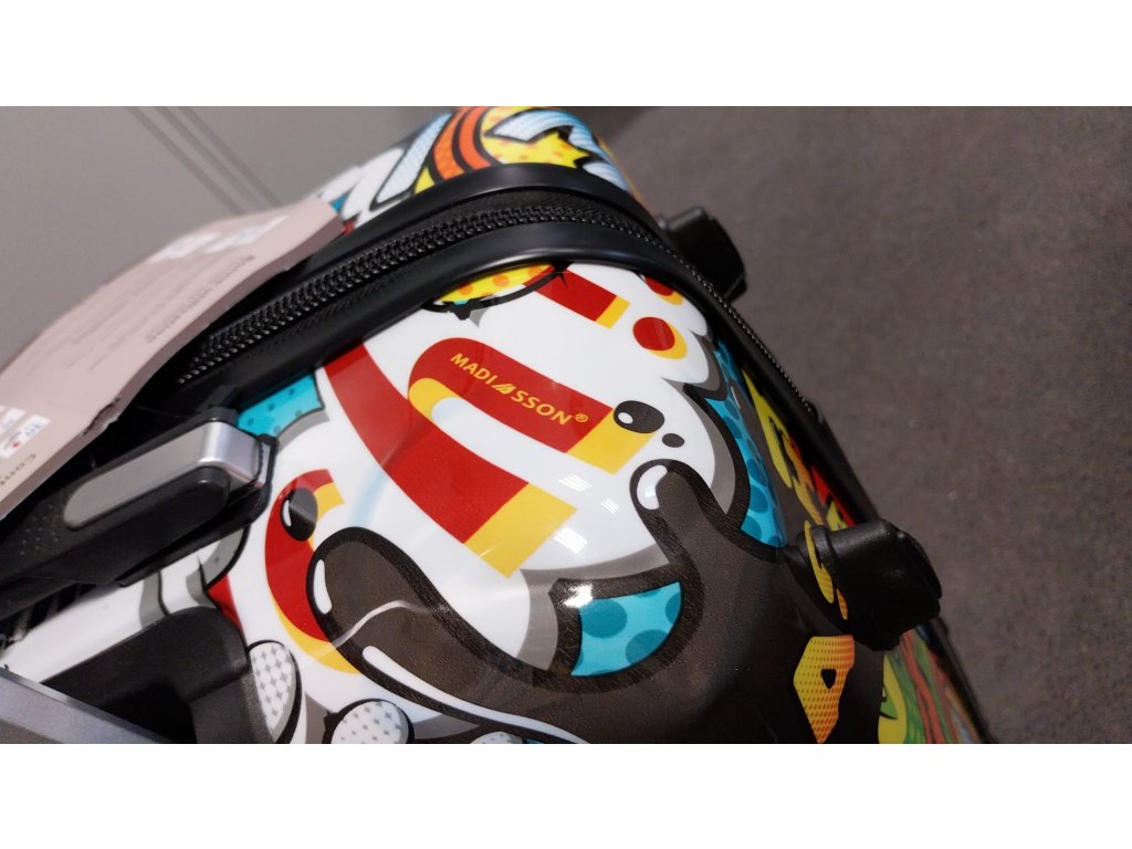 Cestovní kufr 66 cm v moderním designu francouzské značky Madisson s motivem komiksových bublin. Má jedinečný vzhled, který jej odlišuje od ostatních zavazadel svým neobvyklým a barevným potiskem.
