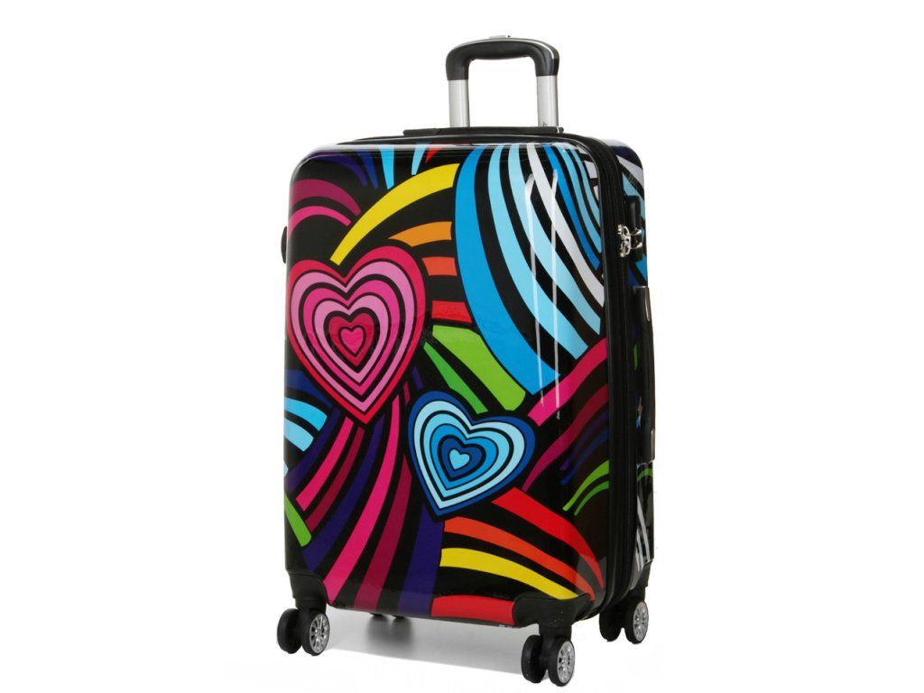 Cestovní kufr 66 cm v moderním designu francouzské značky Madisson s motivem barevných srdcí. Má jedinečný vzhled, který jej odlišuje od ostatních zavazadel svým neobvyklým a barevným potiskem. Kufr je odolný vůči nešetrnému zacházení díky kombinaci materiálu ABS a polykarbonátu.